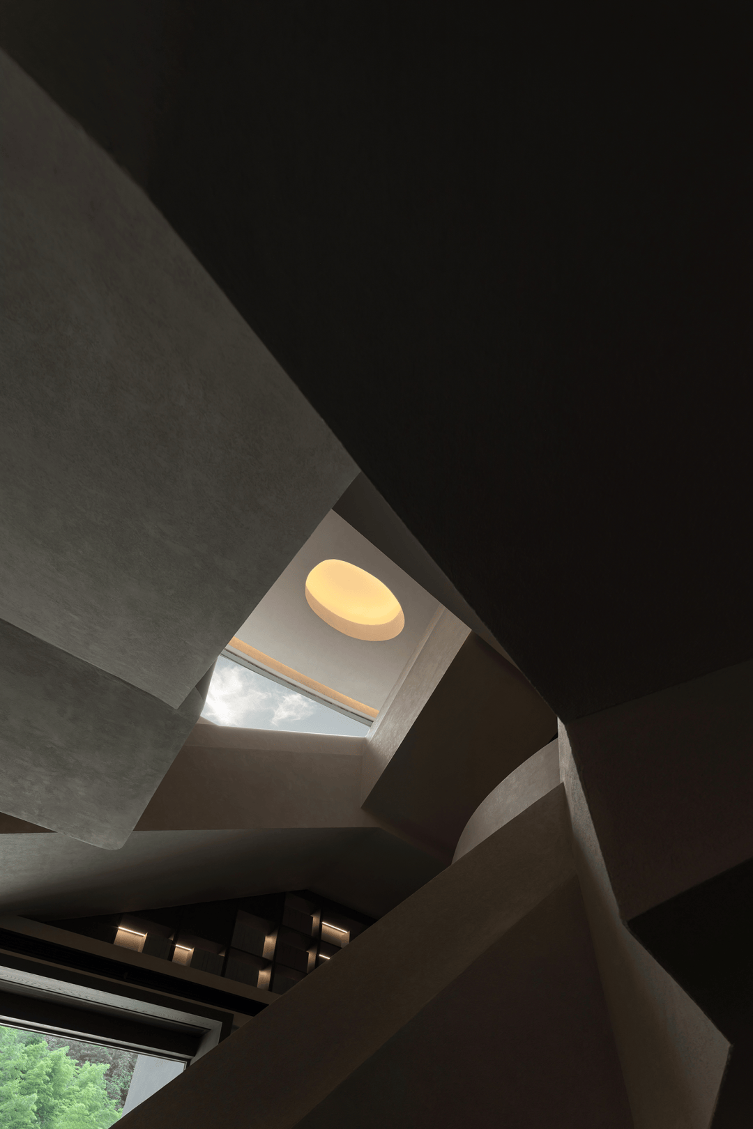 入口顺应着山势的褶皱,像是一条林间小径的自然延伸。人行其间,视线随着路径的转折起伏,时而被厚重的墙体阻隔,时而又被开阔的场景唤醒,让每一次视线的交汇都成了一场意外的惊喜;远山与流云,总是在不经意的小径转角处,与你撞个满怀。