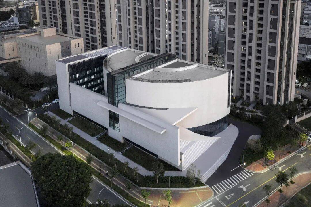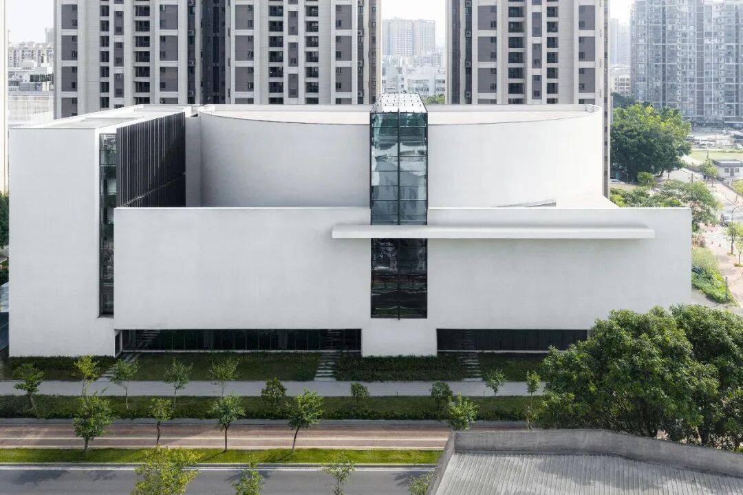 ▲实景航拍 02. 去繁就简:以极简形制构建纯粹空间 传统宗教建筑常依托繁复的装饰符号、强仪式感的古典形制,塑造庄重肃穆的空间意象。而珠海堂的设计,以现代极简的设计手法,用纯粹的建筑语言,表达空间的庄严与秩序感。