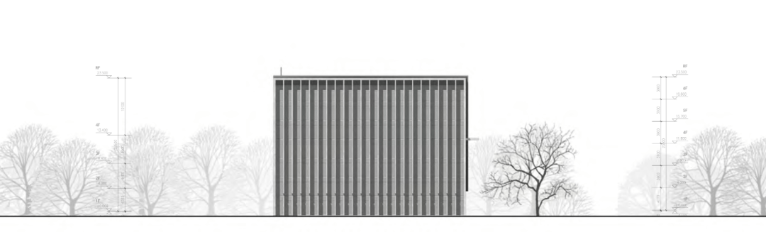 ▲立面细节 03.空间叙事:以渐序列完成空间体验 设计始终以人本主义为核心原则,既关注建筑形态的美学价值,亦兼顾使用者在活动中的行为模式与心理需求。以空间的递进式叙事,完成从城市公共场域到静谧内部空间的温和过渡。
