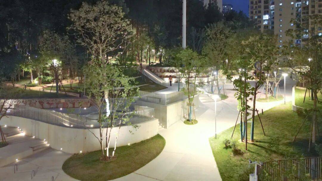 ▲项目夜景© fuli 这片小松林为人们提供了相互交流的机会。项目尽量利用现有资源,保留几乎全部松树,并借助原有地形高差,为周围居民呈现一个兼具可持续精神与探索趣味的公园。建成后,公园深受周边村民、高层小区居民和学生们的喜爱,放学时节尤为热闹。这一新空间不仅在物理上连接了两个社区,也促进了村民与住宅区居民之间的良好互动。它提供了一个有趣、包容且开放的公共自然场所,让所有使用者都能感受到更强的可及性与归属感。 项目图纸 ▲总平面© fuli ▲轴测图改造前© fuli ▲轴测图改造后© fuli 项目名称:放学后——浮山小游园 项目类型:景观 设计方:浮砾设计事务所 项目设计:2022年 完成年份:2023年 设计团队:鲁胤希,王一凡 项目地址:中国湖北省咸宁市咸安区书台街81号浮山新村 建筑面积:16790 ㎡ 摄影版权:鲁胤希, 钟思佳 合作方:咸宁市淦川设计院, 钟思佳 施工方:湖北香谷生态环境有限公司