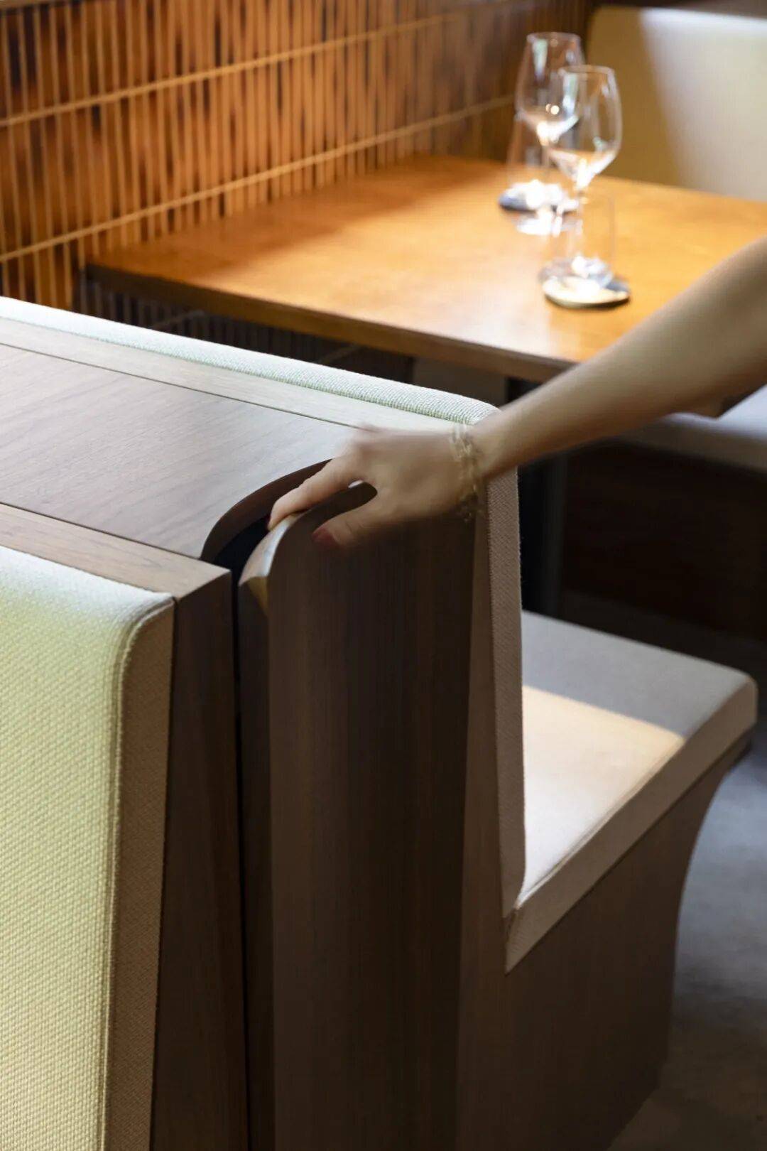 ▲家具细部© Harold de Puymorin 在室内设计中,色彩与材质通过细腻的渐变自然过渡,映射季节的变化,同时灯光也在一天之中微妙调整,以呼应日光的变化。空间两端设置了两组雕塑性的灯光装置,分别象征太阳与月亮,体现昼夜之间的和谐关系。