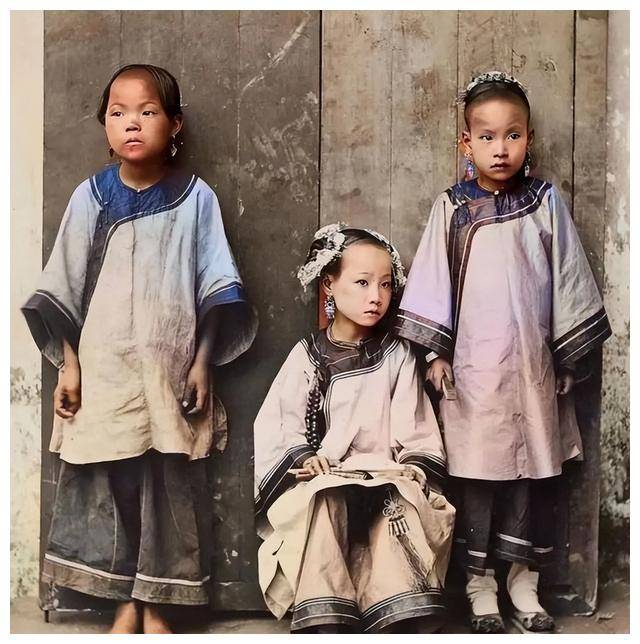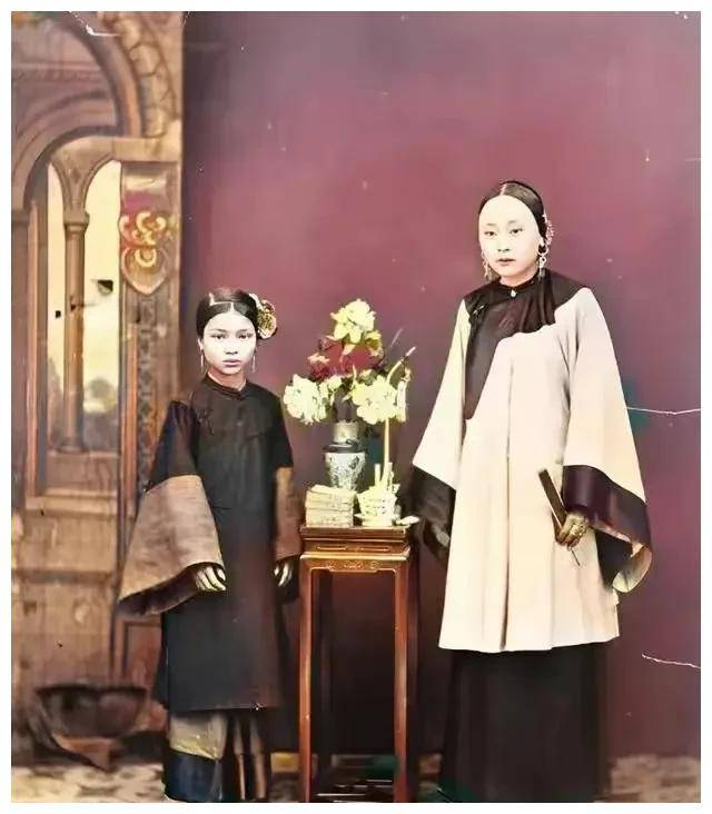 富家女子与通房丫鬟同框,一个缠足,一个未缠。未缠足的是丫鬟,而缠足则是富贵象征。身高差异显著,如同唐代画像中主人与侍女的比例。晚清时期,照片里的每个人几乎没有挺起脊梁的姿态,生活的压迫感溢于言表。