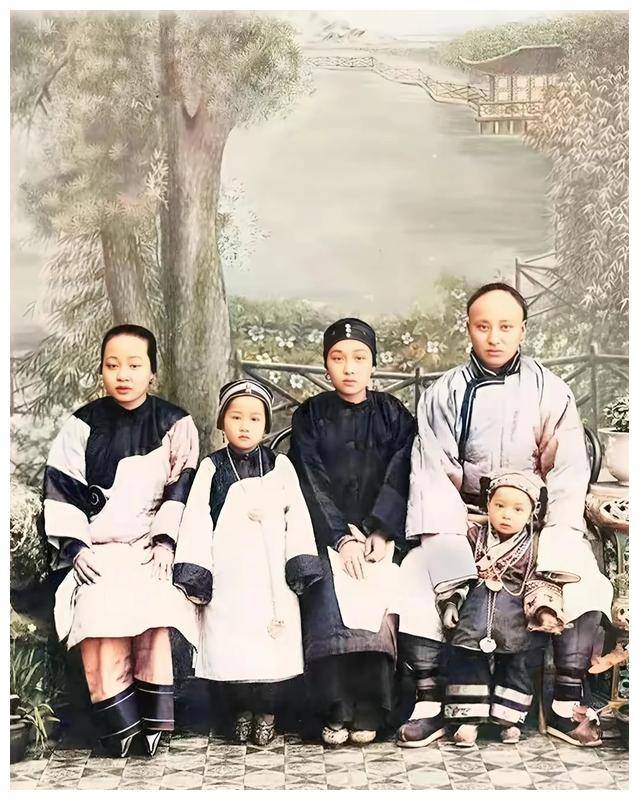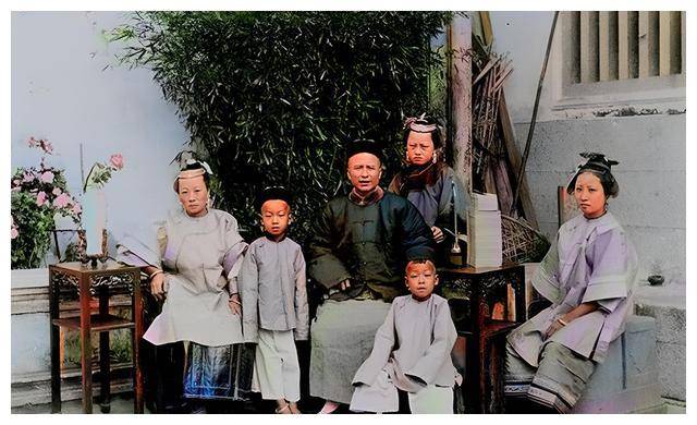 照片中,右侧坐着的是正妻,后方站立的可能是小妾,而左侧坐着的,或许是女儿。妾在正妻面前无资格坐下,这些细节展示了严格的家族等级制度。