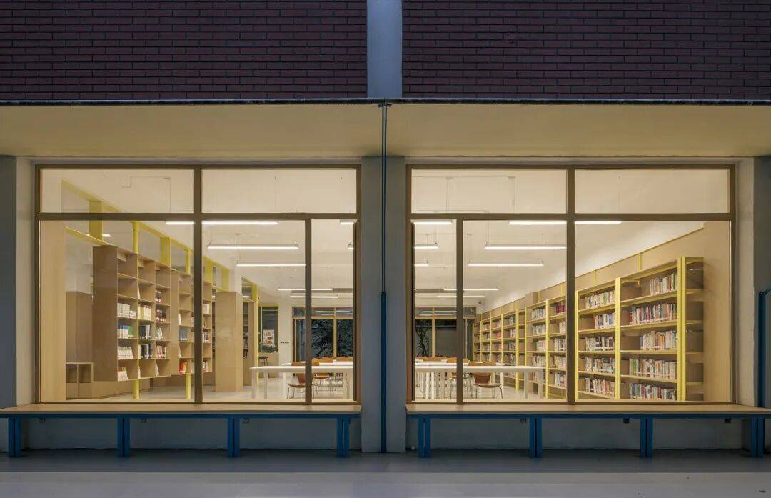 © 刘国威 这样的情况下,我们尝试在解决需求的同时,释放出一个具有流动感、互动性与探索乐趣的校园空间。 我们将视线转向了城市中的“口袋公园”。在这样的场域中,大爷大妈钟爱的健身器材往往是散布在整片场地的——它们不需要依附于建筑主体,而是以一种随性、不设限的状态,鼓励人们自发地参与其中。这些关于玩耍与公共交往的意象,启发了我们将图书室塑造成为一个校园“游乐场”。