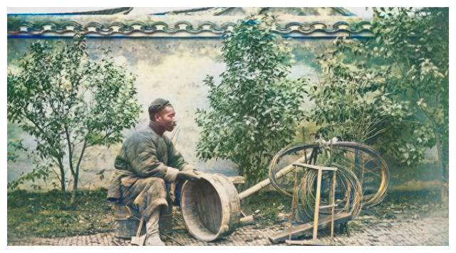 照片中,还有一位修桶的匠人。曾经的手艺人,靠一门技艺养家糊口,深受社会尊敬。过去的老工匠,尤其是木匠和瓦匠,他们的手艺简直可以说是出神入化。那时的木匠,不仅能做出普通人看不懂的家具,还能制作一些精美的手工艺品,堪称艺术。如今,虽然传统手艺逐渐消失,但那份对技艺的敬畏与尊重,却依然存在。