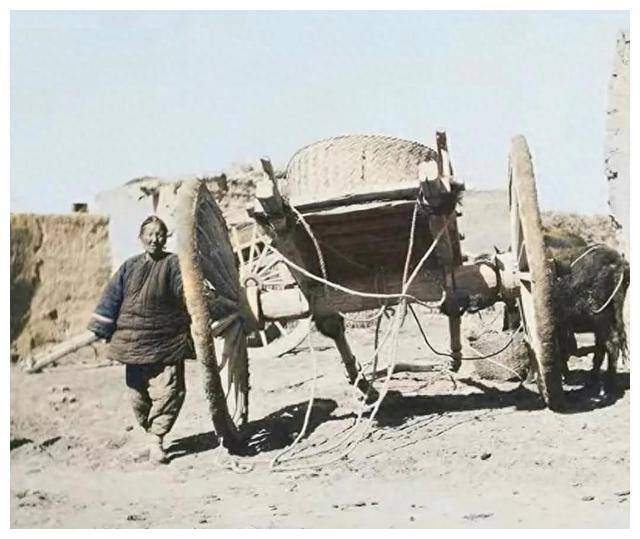 在另一个镜头里,一辆高大无比的牛车静静停在路边,车轮比旁边的女人还要高。那时的交通工具简单而粗糙,但它承载着无数人的辛勤劳动与生活希望。