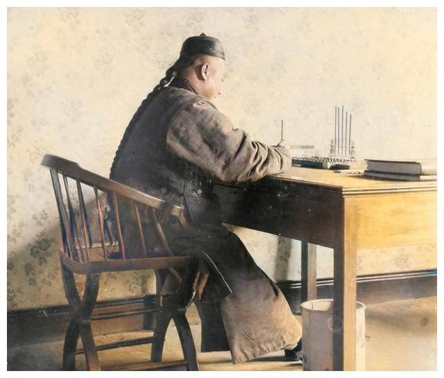 那张照片中,一位清朝的男子正在书桌上专心写字,而桌子底下居然有个垃圾桶。如此办公环境,在当时一定算是一个比较体面的工作场所了。清朝的官员,或许也曾是这类白领阶层中的一员,尽管他们的办公条件相比今天来说,简直不能再简陋。那时的办公桌,简陋却不乏文化气息。