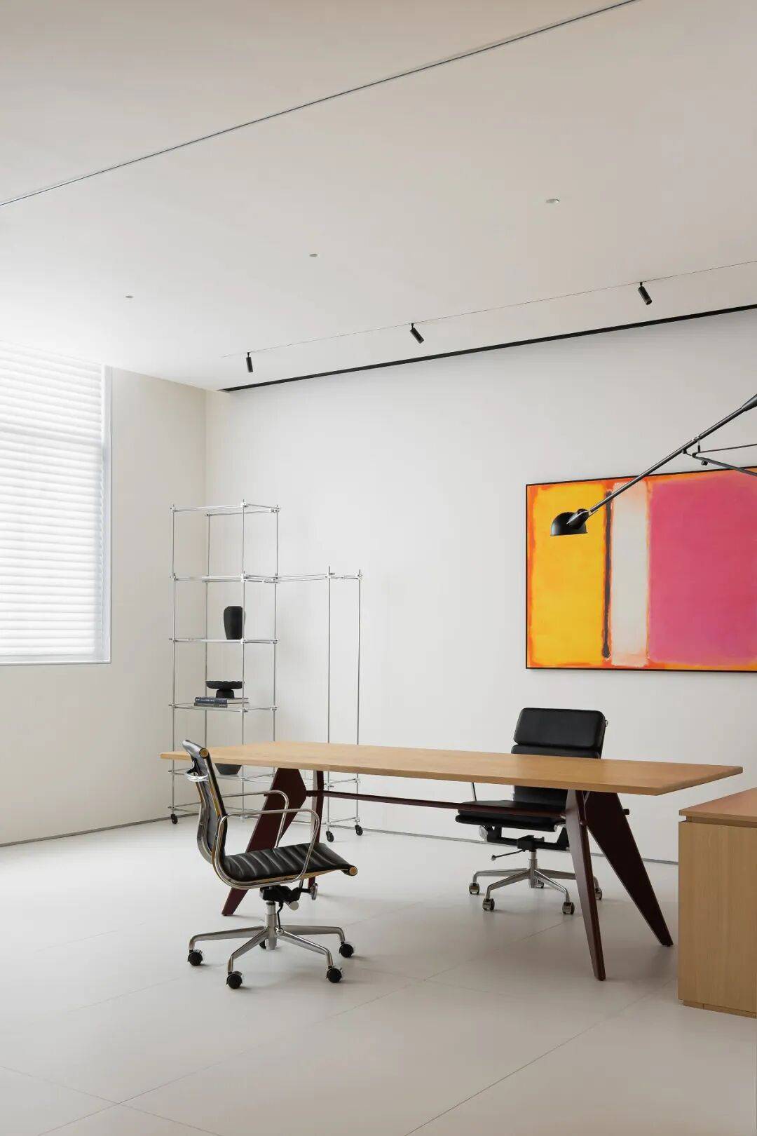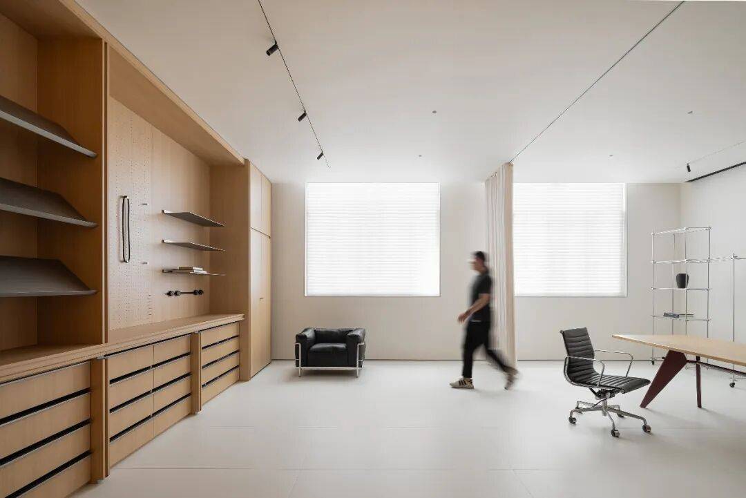 办公区细节 在 50㎡极小空间与有限预算的双重约束下,本次设计不仅突破了场地本身的限制,通过精准的空间划分打造出内容丰富、动线流畅的专业展陈区域,更构建了一个多功能融合、灵活可变的开放办公与接待场域。