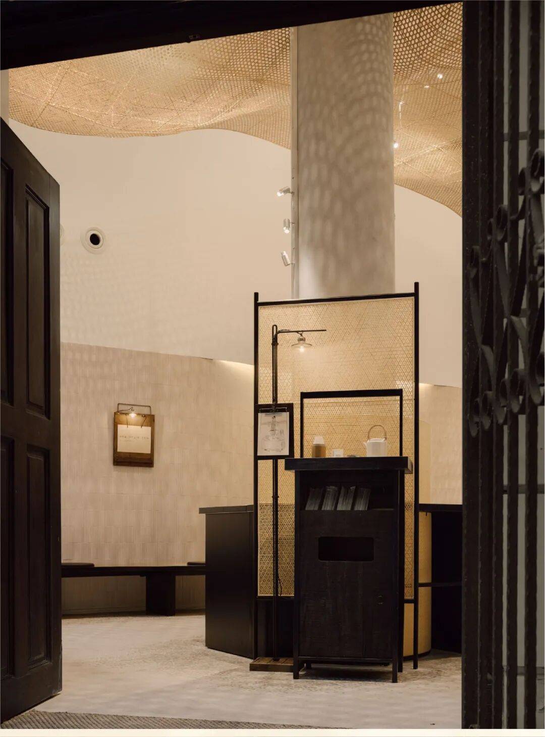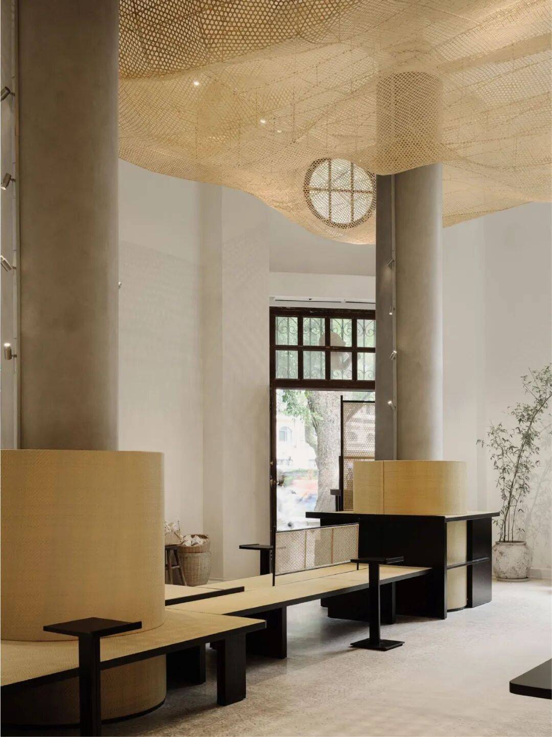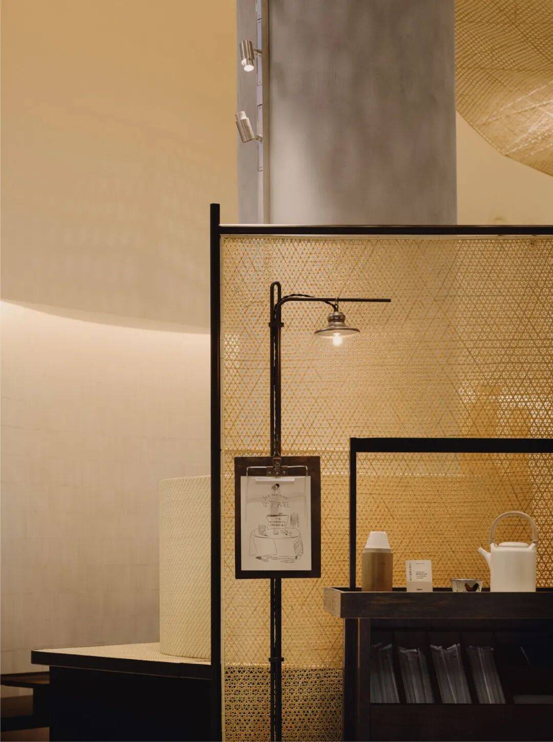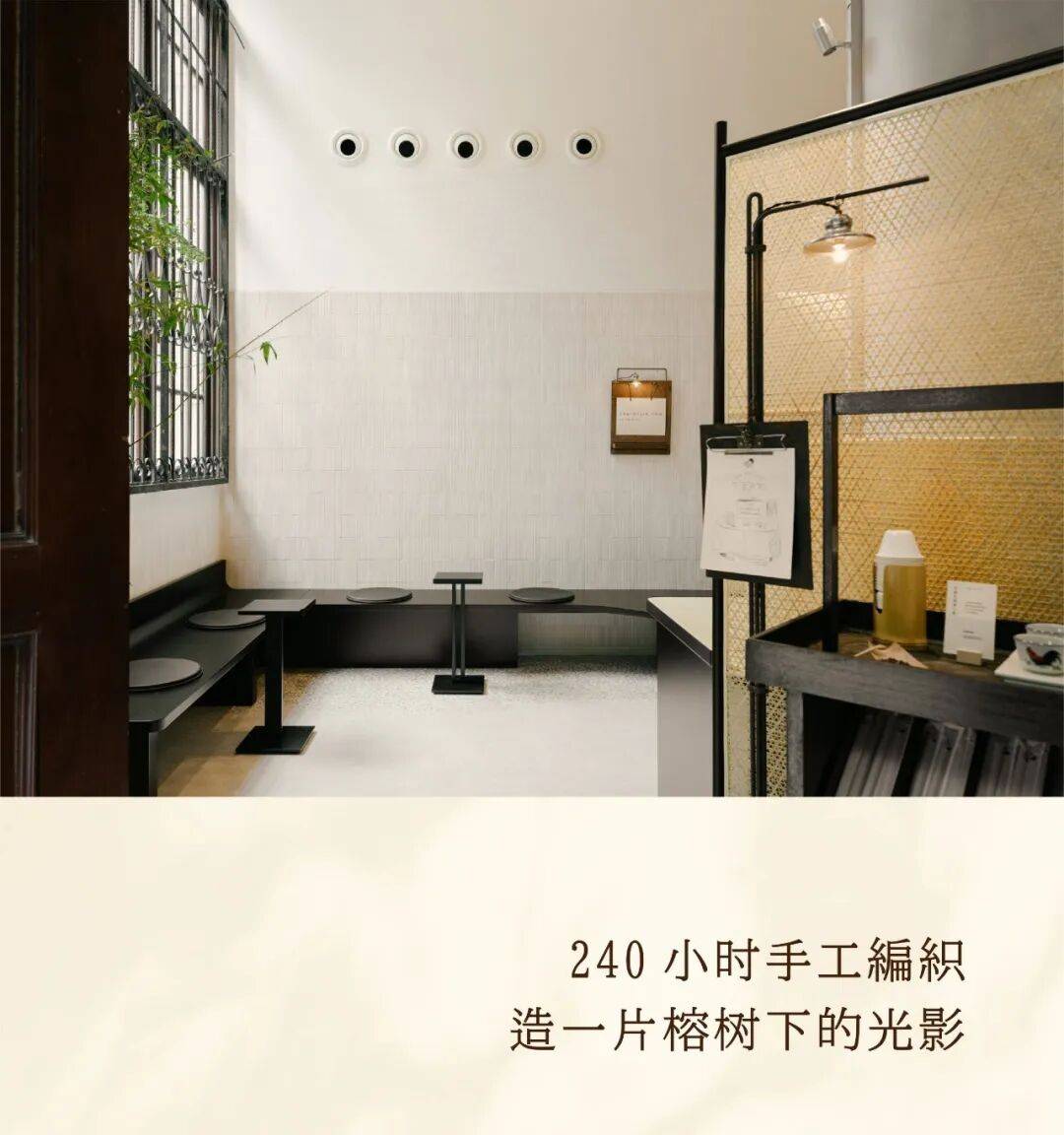 当灯光透过疏密有致的竹编纹理倾泻而下,光影被切割成斑驳的碎片,仿佛将整间门店搬到了榕树荫下。光影流转之间,与地面细密渐变的手工马赛克交织出丰富的空间层次,置身其中,仿佛能感受到那种“无事闲坐,饮茶听风”的自在意境。