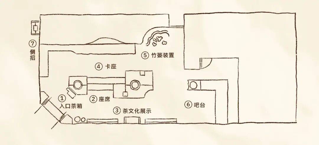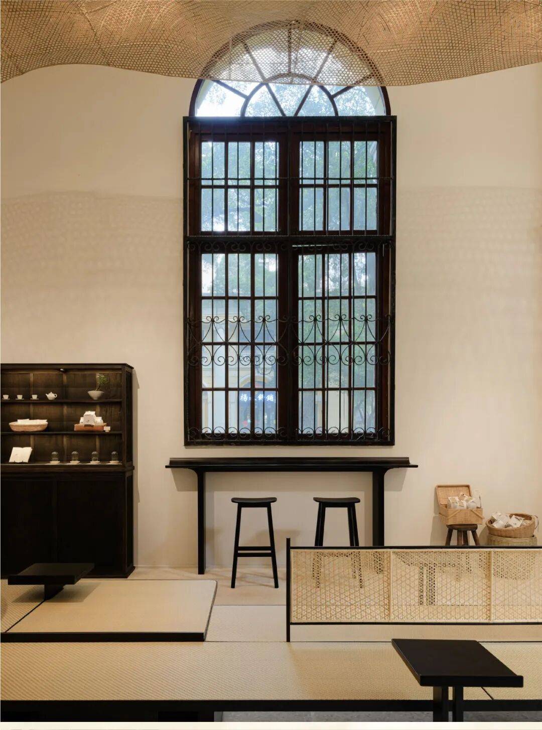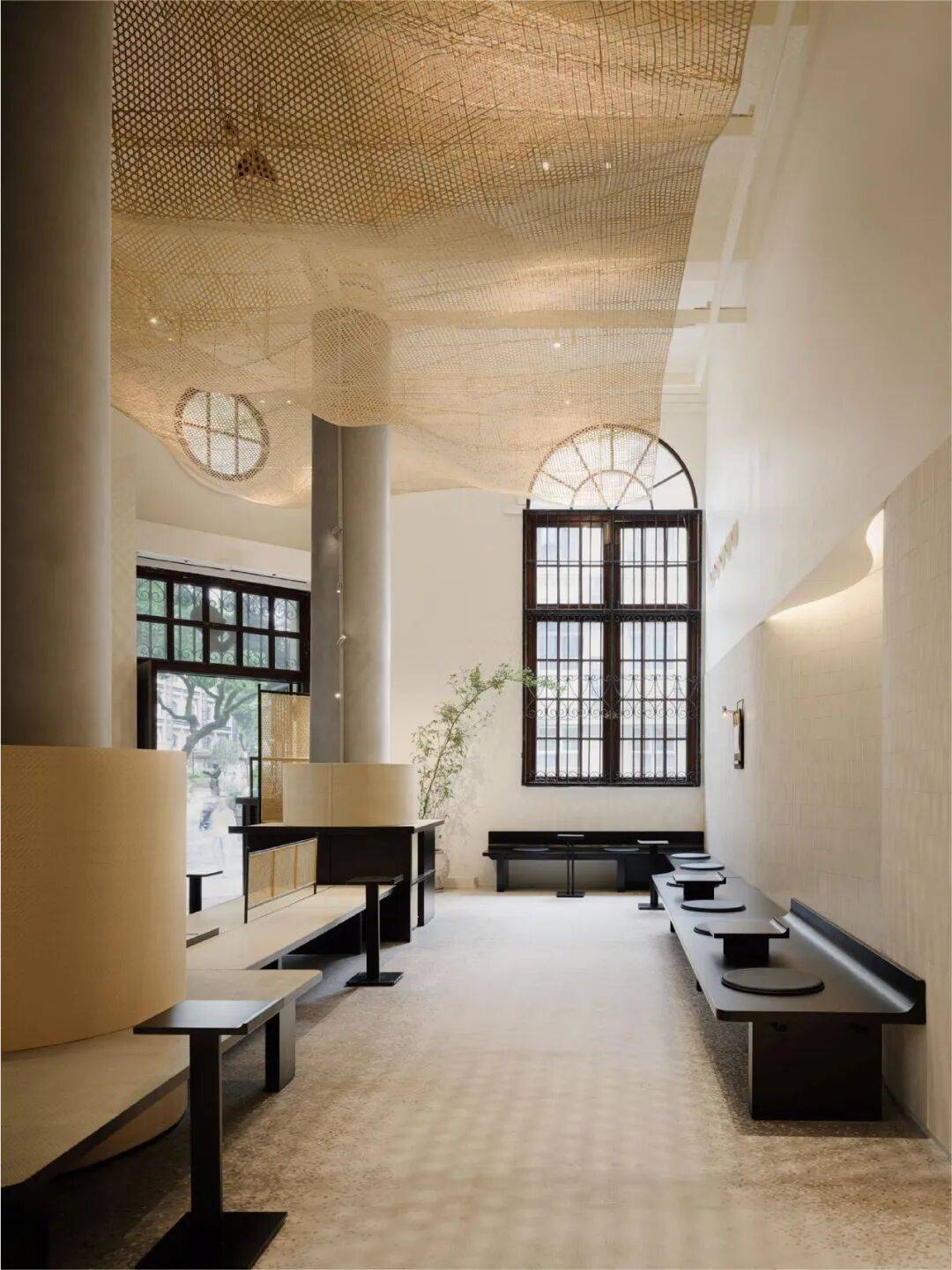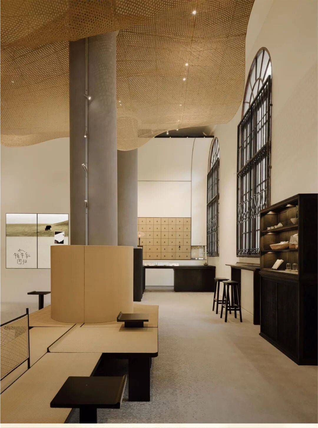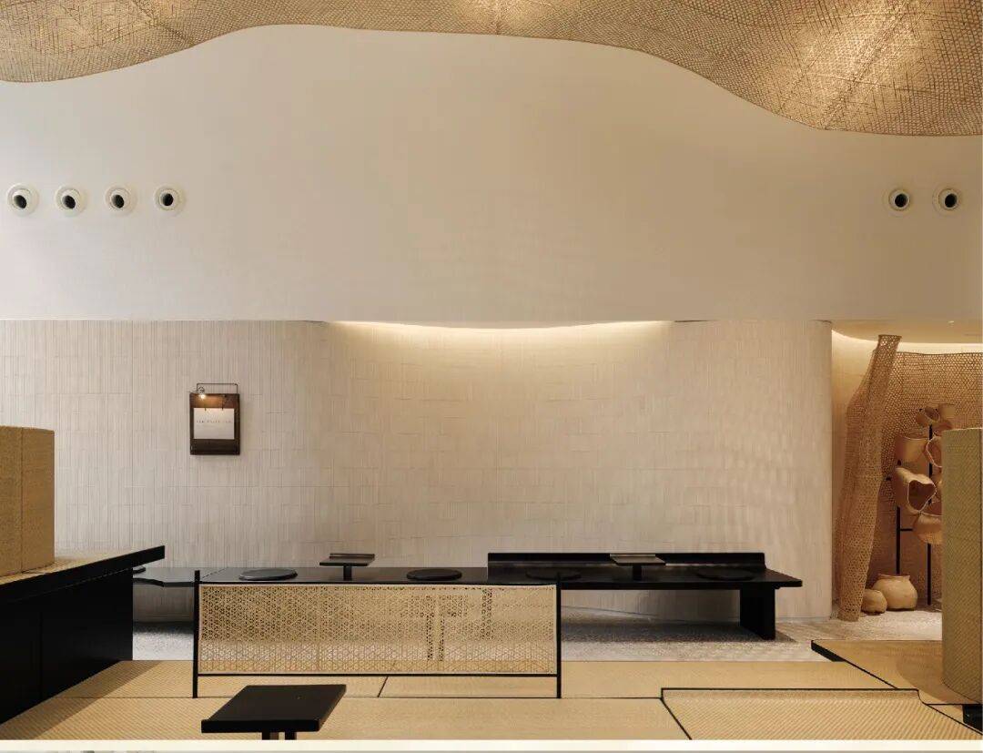 当灯光透过疏密有致的竹编纹理倾泻而下,光影被切割成斑驳的碎片,仿佛将整间门店搬到了榕树荫下。光影流转之间,与地面细密渐变的手工马赛克交织出丰富的空间层次,置身其中,仿佛能感受到那种“无事闲坐,饮茶听风”的自在意境。