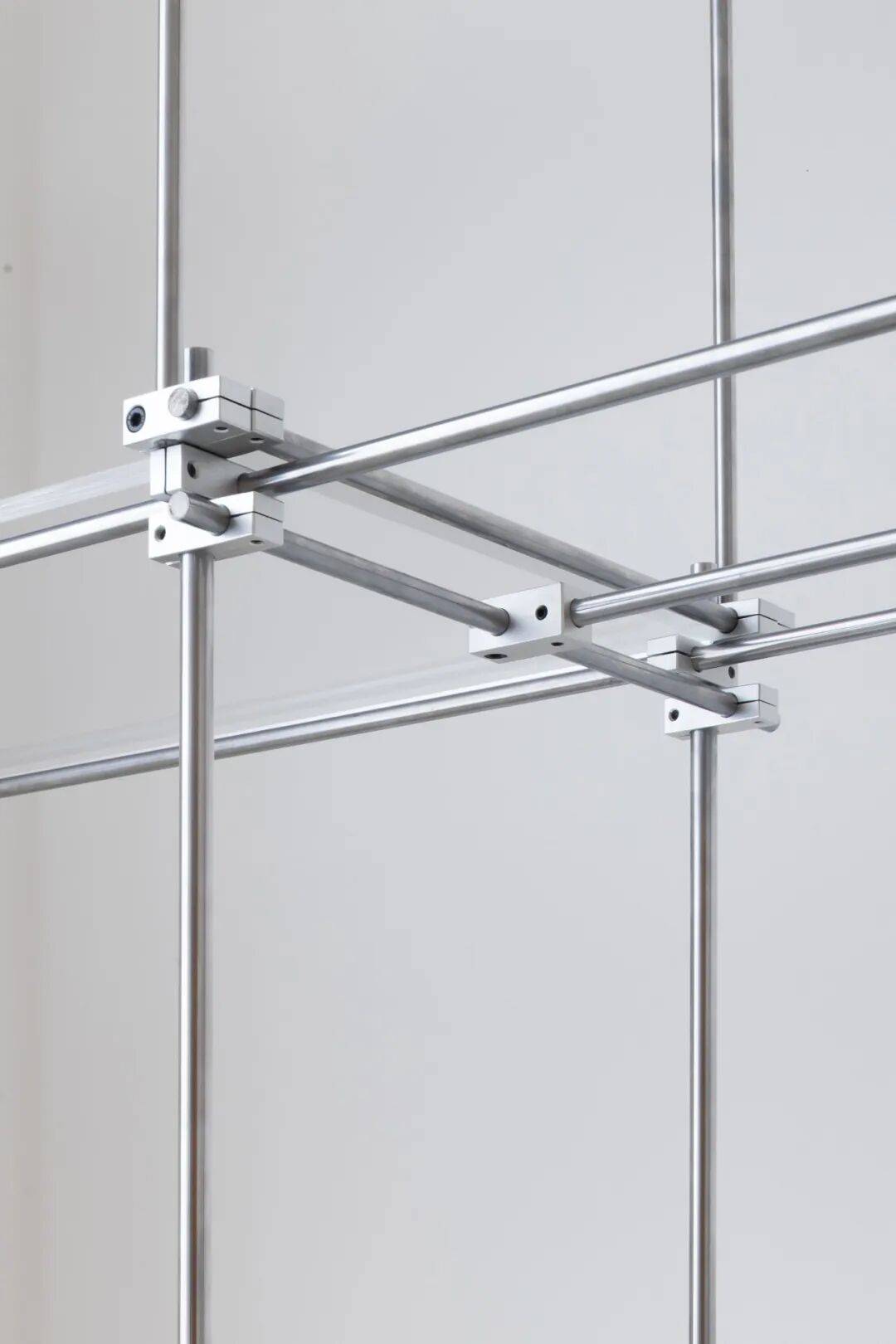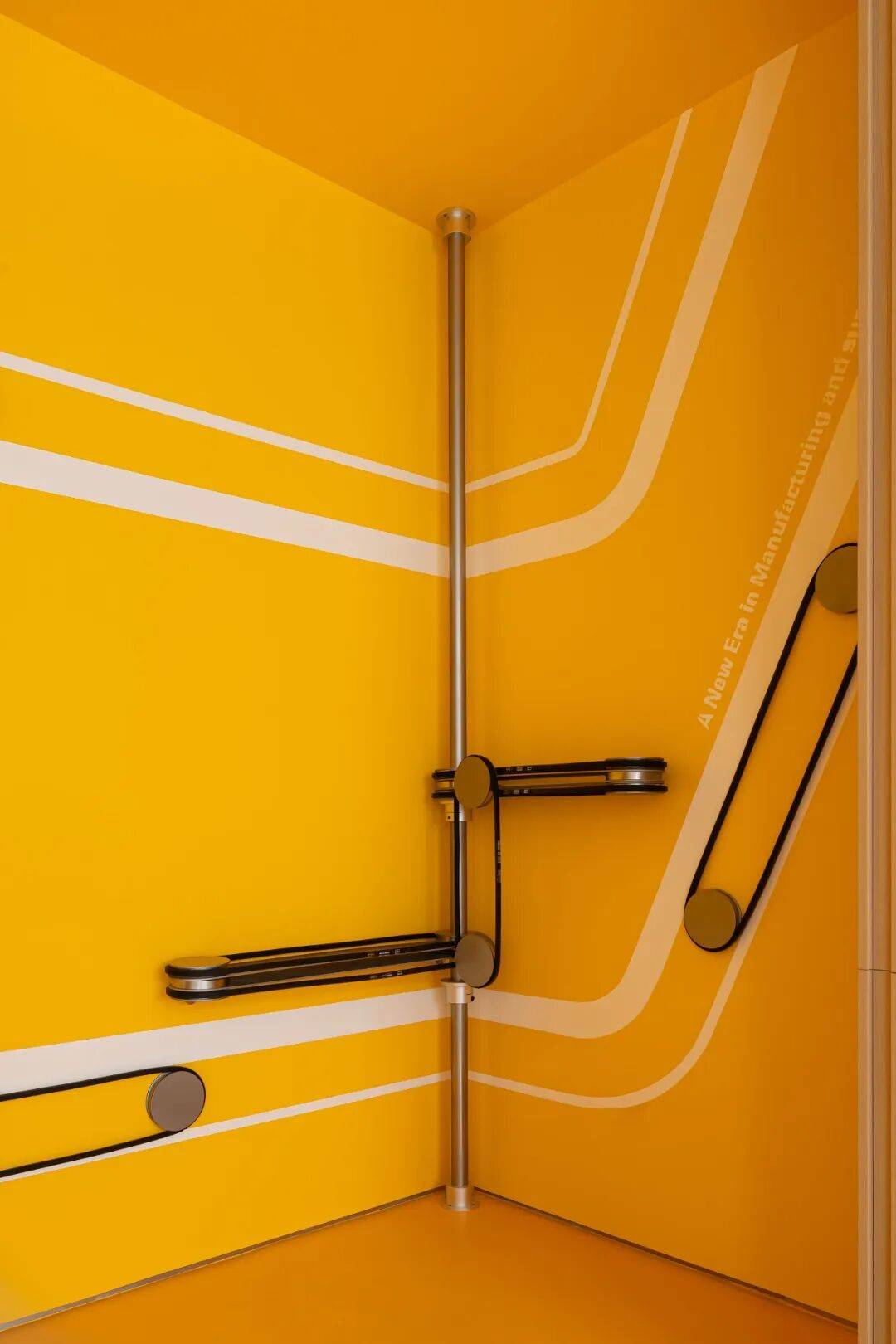 办公和展示通道 一侧打造为专属展示通道,通过线性的空间布局,为访客营造从外部到内部的沉浸式空间转换感,引导其有序行进、层层感受品牌魅力,让展陈动线更具节奏感与体验感。位于展廊尽端设置了一个以传动带为原型的装置展架,产品和功能深度结合。