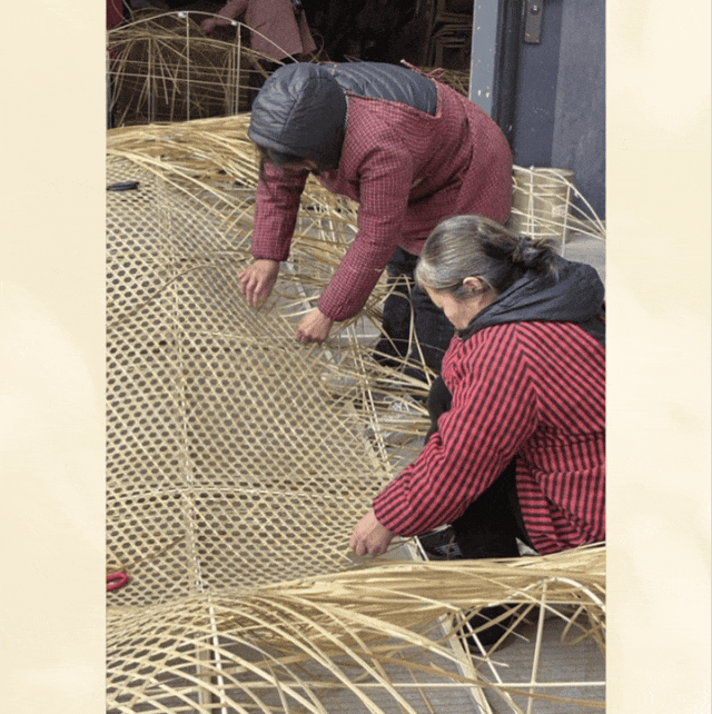 墙砖模拟竹席的纹理,纵横交织,触手生凉。角落堆叠的竹编篓子装置,仿佛刚从茶山采茶归来,带着悠然的香气重现朴素温暖的制茶场景。