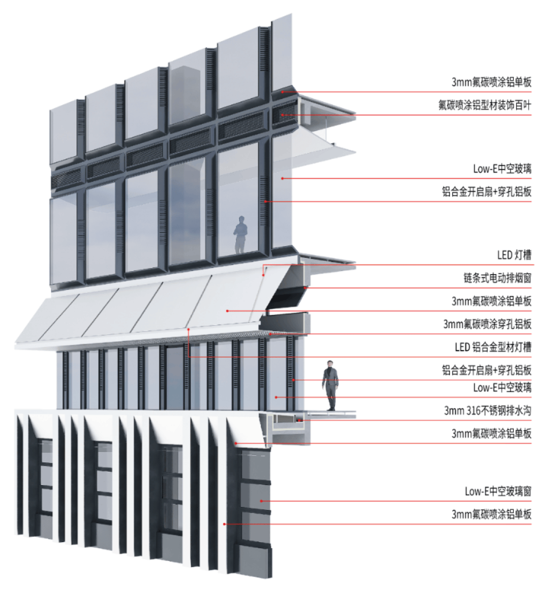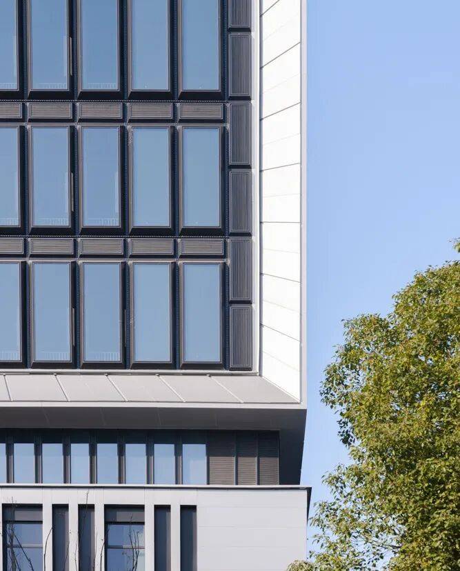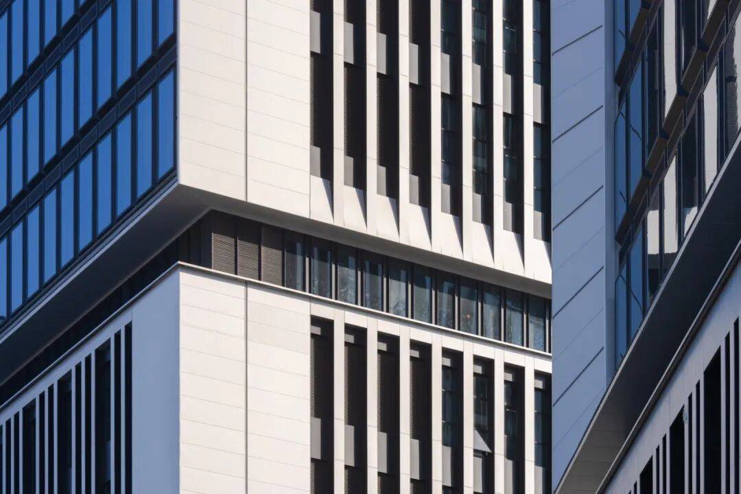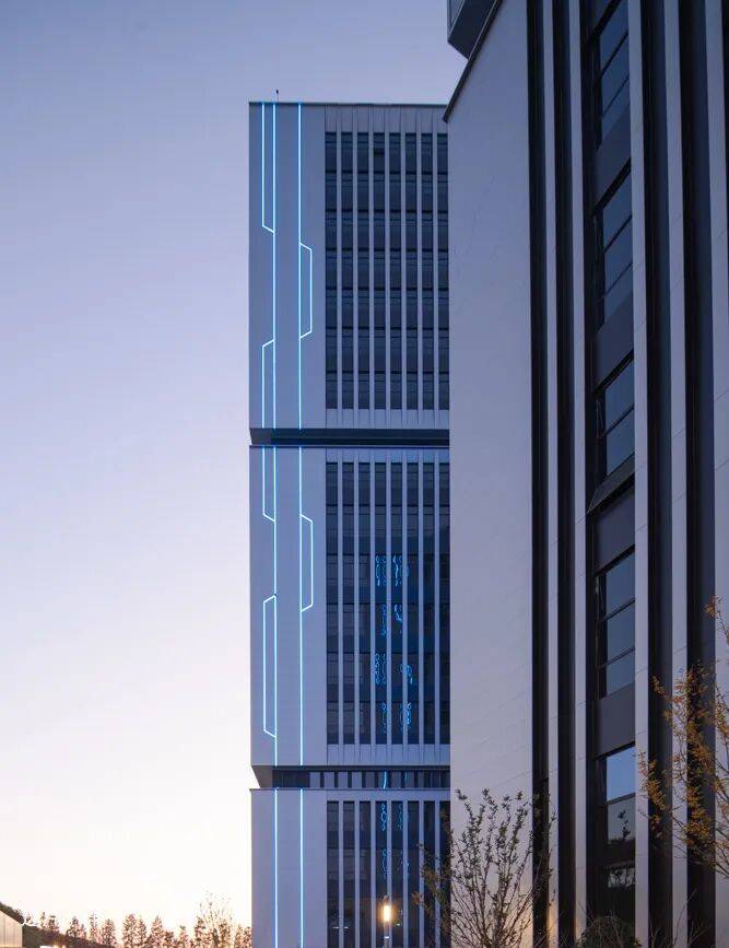 建筑局部 结语 作为标杆性的产业园区项目,设计不止于如何把工厂“高效叠起来”。它探索的是关于产业空间的重构:将原本线性的生产关系,转化为垂直叠合的协同系统;将封闭的工业园区,转为向城市开放的复合片段。“产业活力湾”不再只是一个园区的名称,更像是一种方法——在有限土地中重组效率,在复杂系统中建立秩序,并在工业与城市之间,寻找新的平衡方式,以此为联创集团的产业园区实践,积累了一种可被持续演进的原型。