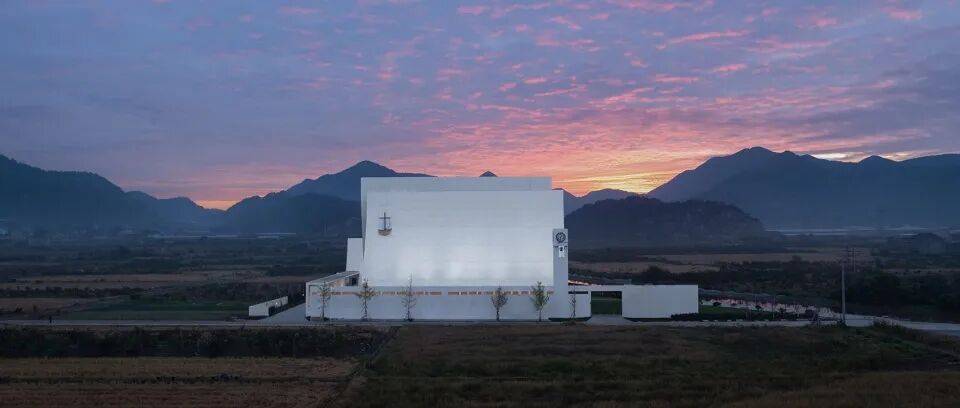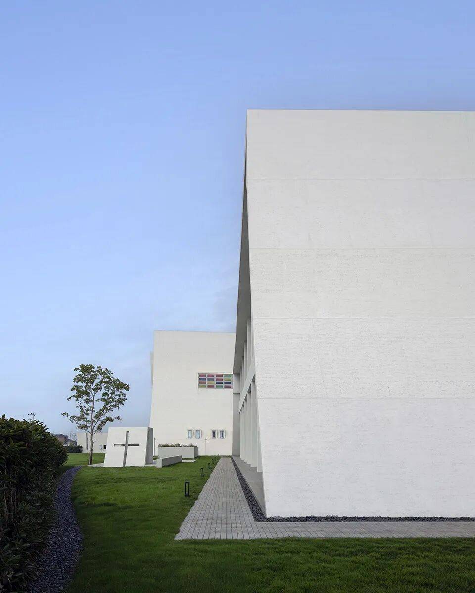 ▲室外讲台© 黎伟 从场地精神到空间叙事,从形制转译到建构逻辑,本案以现代主义建筑理论为内核,将滨海乡村的在地语境、宗教空间的精神需求与当代建筑的建构理性深度融合。纯净的色彩材质、纯粹的结构体系、变幻的光影叙事与山海田野的自然基底共同作用,构建出引人沉思的现代精神场所。