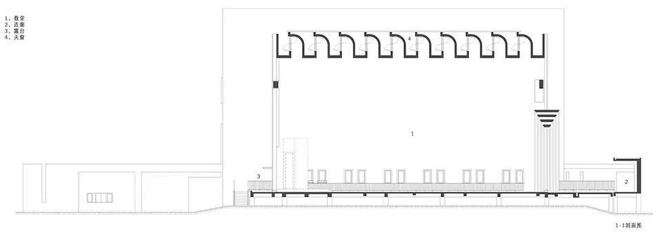 ▲主楼剖面图© 中国美术学院风景建筑设计研究总院有限公司 项目信息 项目名称: “田野之帆,心灵之舟” 象山鹤浦天主教堂—— 现代主义转译下的滨海乡村教堂建构 项目类型:建筑 设计方:中国美术学院风景建筑设计研究总院有限公司 项目设计:2020.04 完成年份:2024.06 建筑设计:张欣然、王剑鉴、刘航、解婧、李青璇、贾伊涵 结构设计:李磊、宣圣华、潘艺倩、谷圣杰 设备设计:刘颜渊、蔡凤祥、祝悦 景观设计:张欣然、王剑鉴、解婧 幕墙设计:刘德权、祝建伟 灯光设计:方晓灵 项目地址:浙江宁波象山鹤浦镇 建筑面积:2248.54㎡ 摄影版权:黎伟 客户:宁波市天主教爱国会