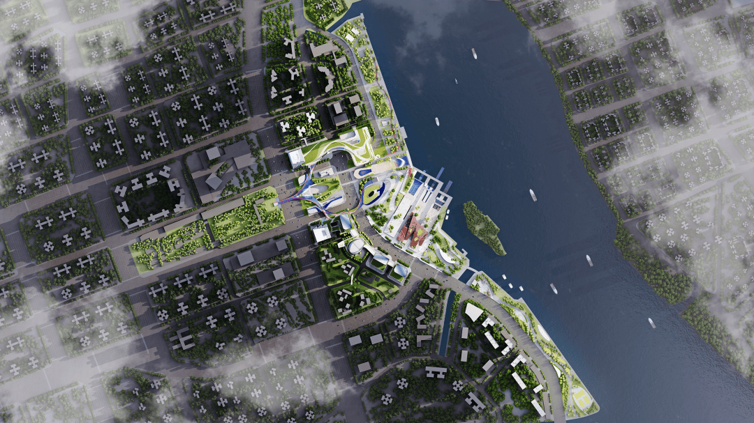 自然与城市相交融 团队将区域生态廊道与大区域生态景观链接,让片区融入城市的生态版图,并通过构建多层级的景观系统和以生态为导向的公共开放空间系统,形成自然与城市相互交融的布局形态,同时依附丰富的自然滨水资源,以水为媒介,建立全新的水城关系,打造出生态友好的活力空间。 设计基于开放空间设计原则,在片区内打造了包括中庭绿地、公共防护绿地、滨水生态绿地以及城市公园绿地在内的多尺度绿地空间。通过在滨江区域打造了极具特色的生态滨水廊道,结合历史遗迹、科技文化、商业娱乐等区域公共空间设置观景视点,串联水巷空间、滨江岸线、公共院落和各类公共设施,移步换景,实现从私密到公共空间的连续体验变化,塑造独特的水域感知。