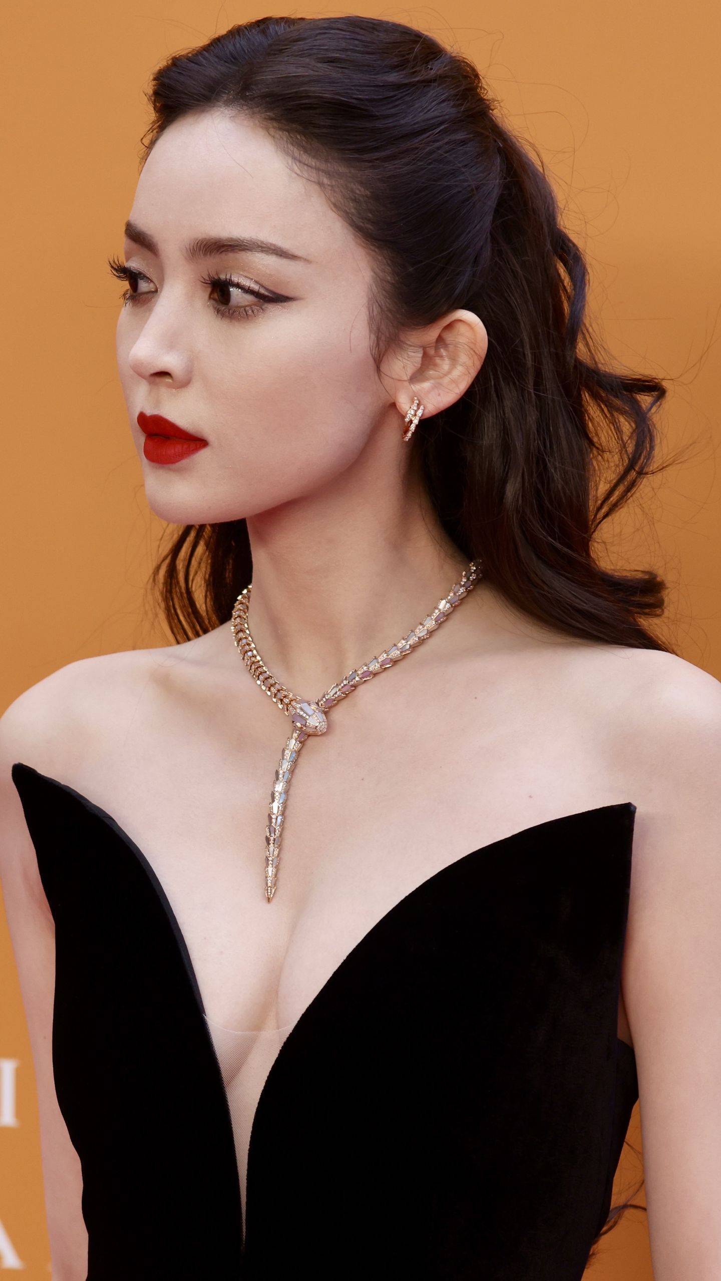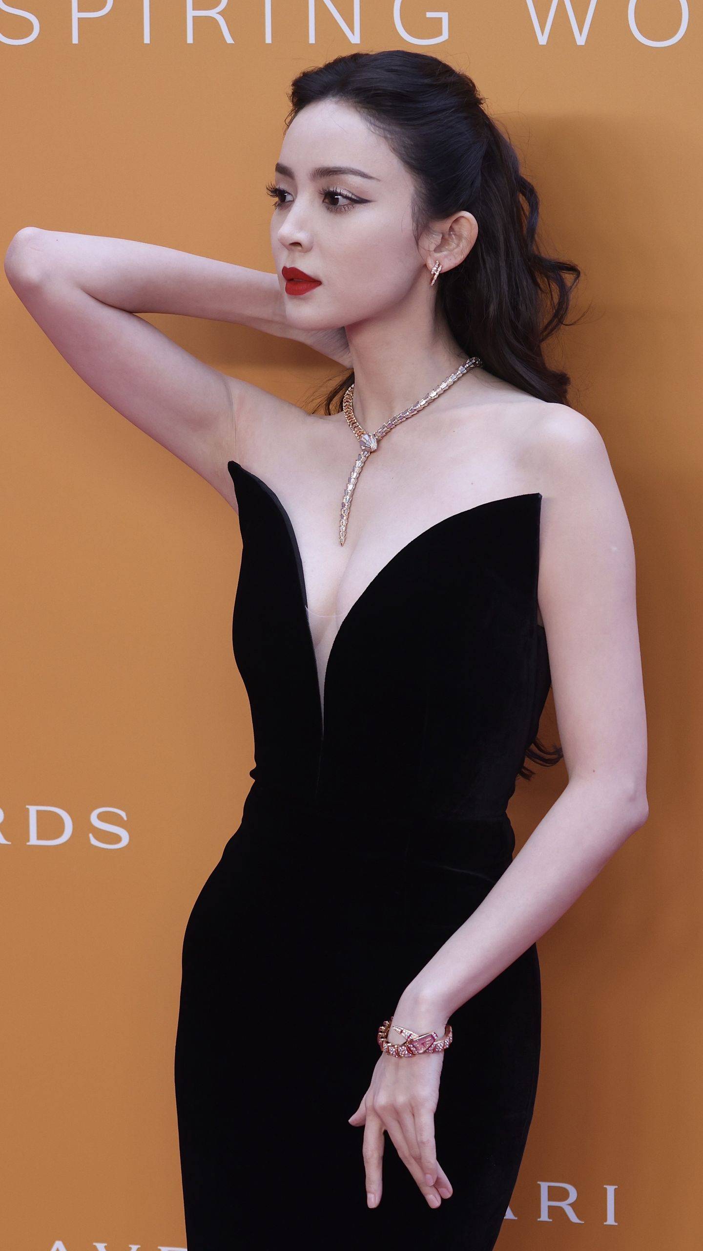 古力娜扎黑色深V礼服长裙水晶珠宝首饰穿搭怼脸拍 惊艳炸屏!