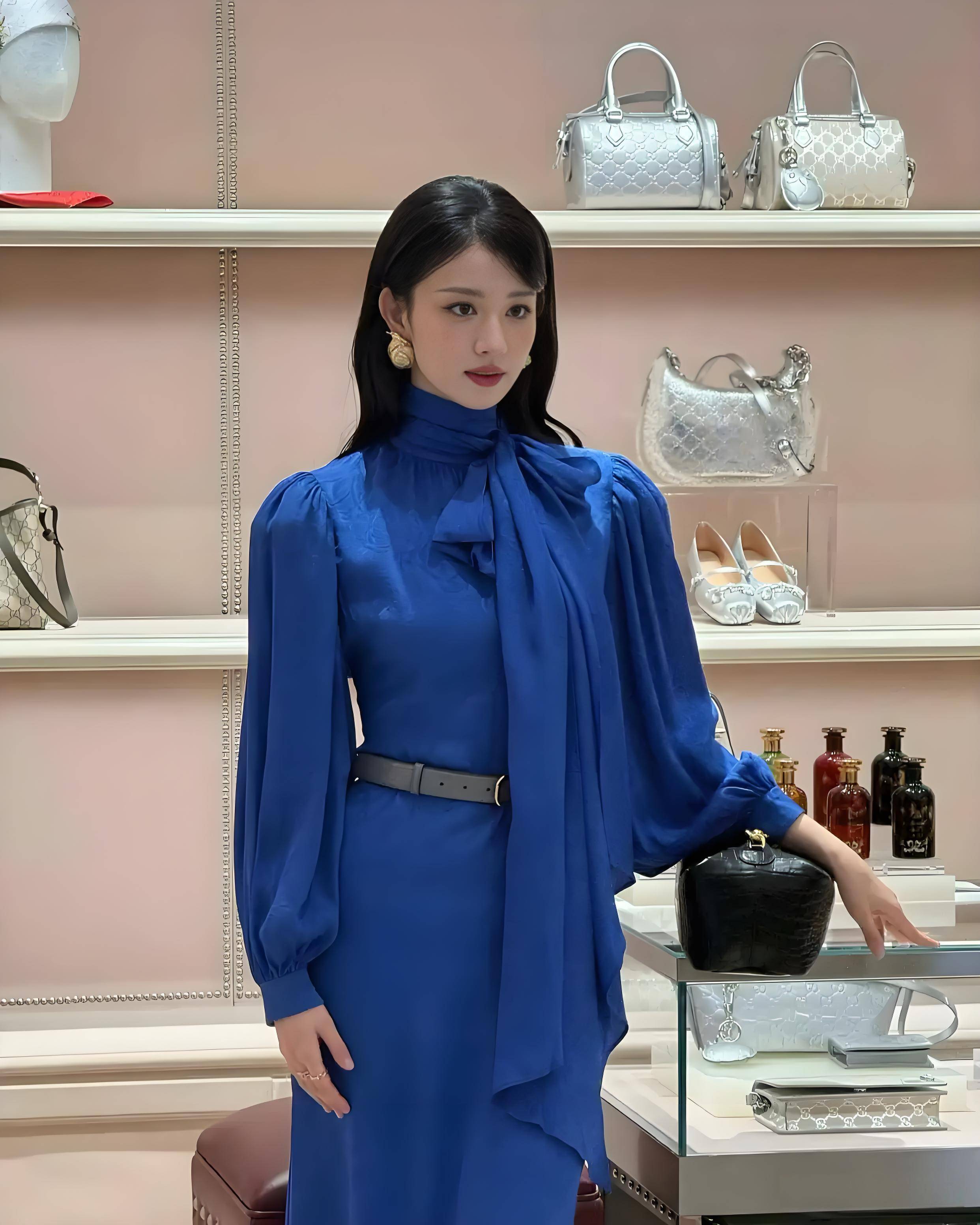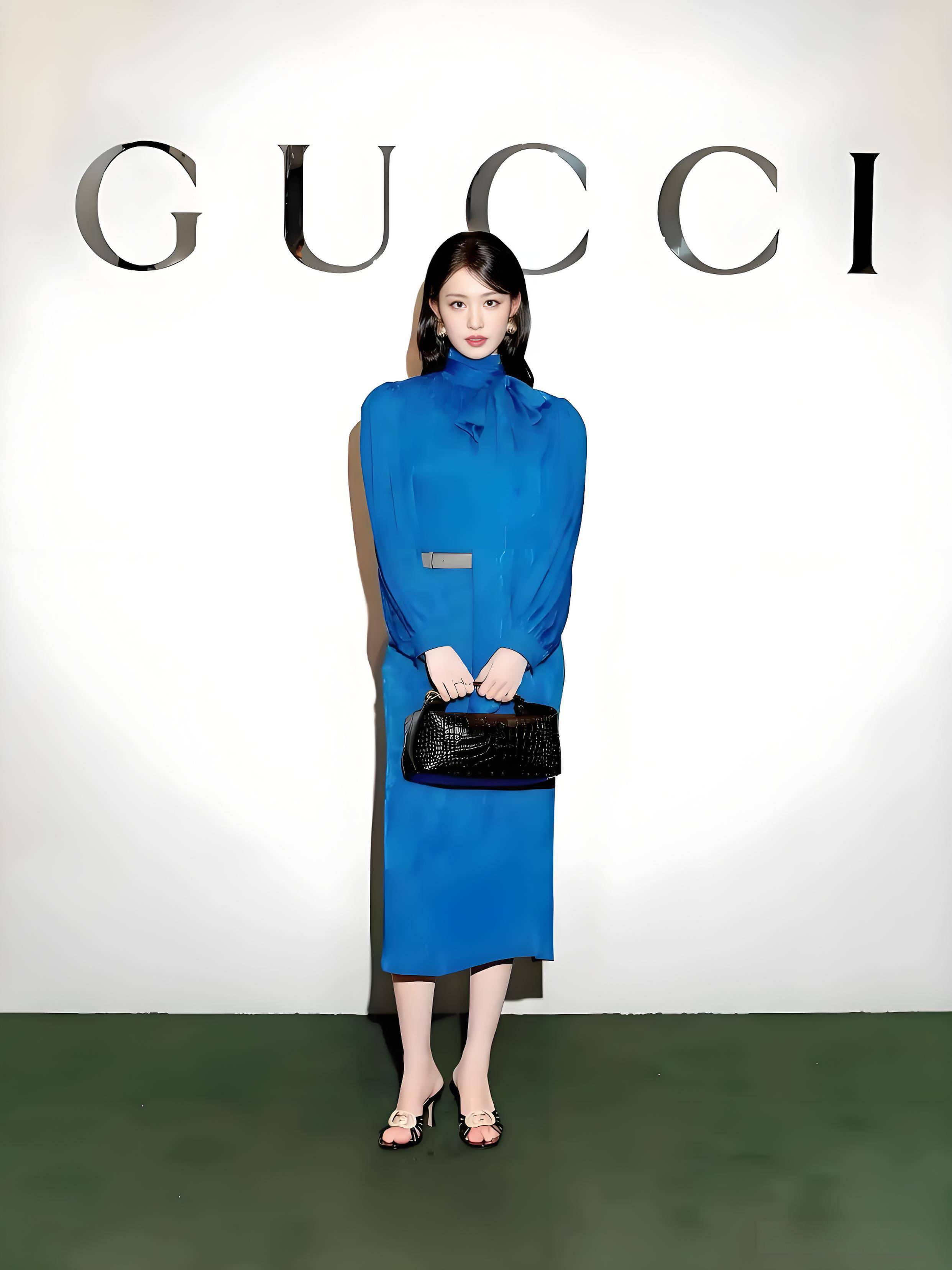 王楚然此次选择的是一袭来自GUCCI 2026早春系列的宝蓝色开叉纱裙。这条礼服仿佛是为她量身定制一般,完美地贴合了她的身材与气质。