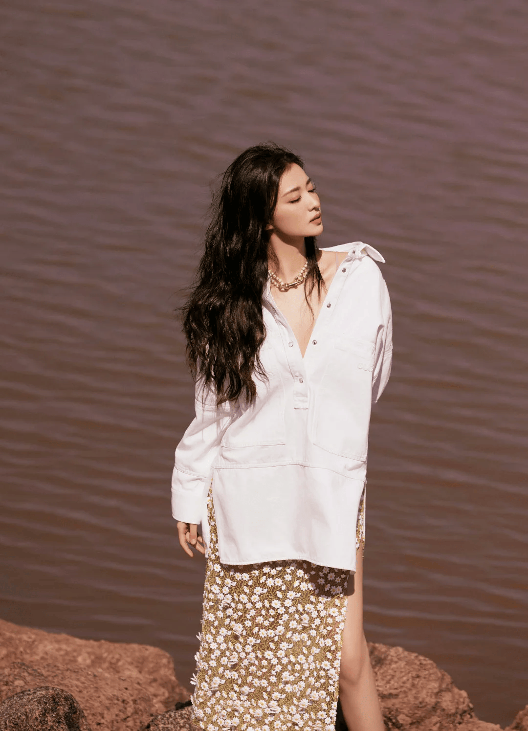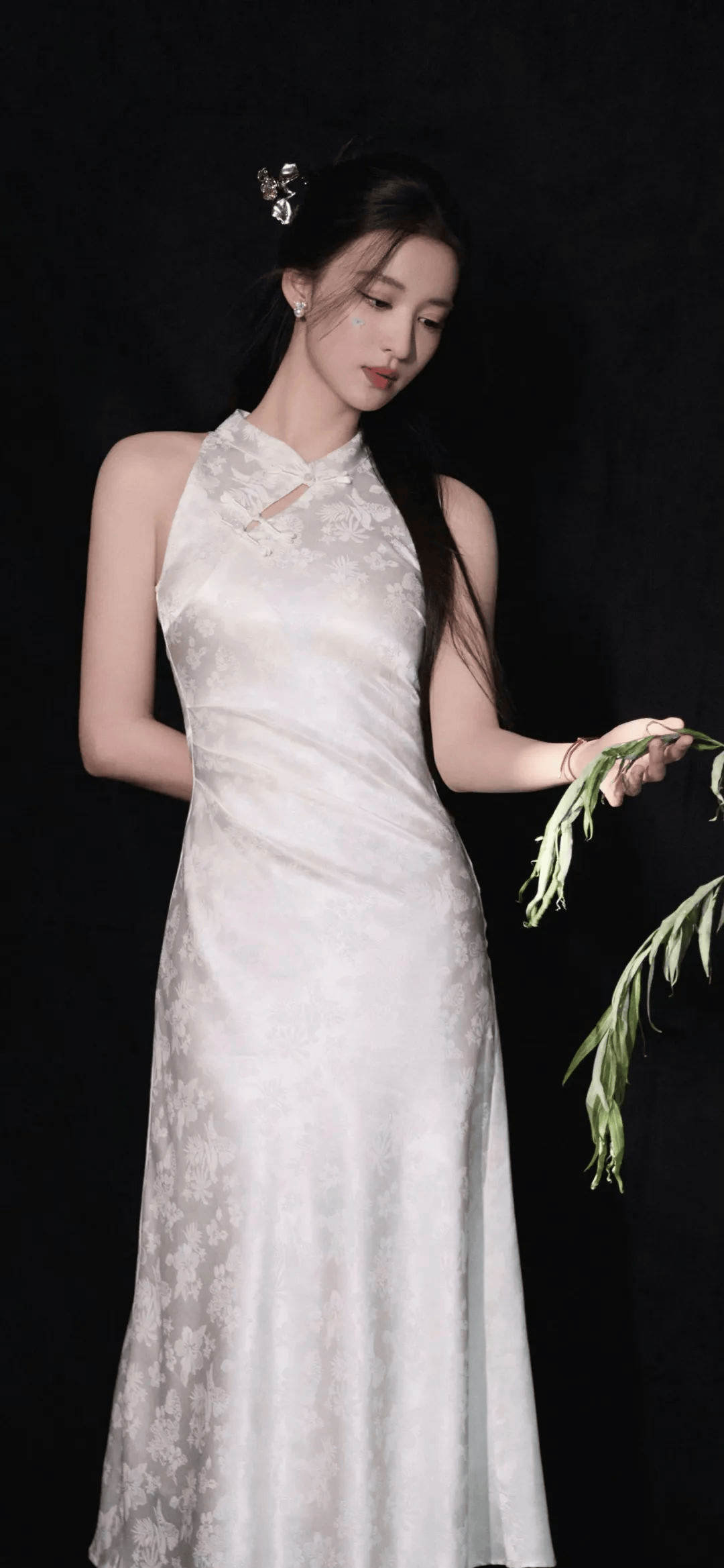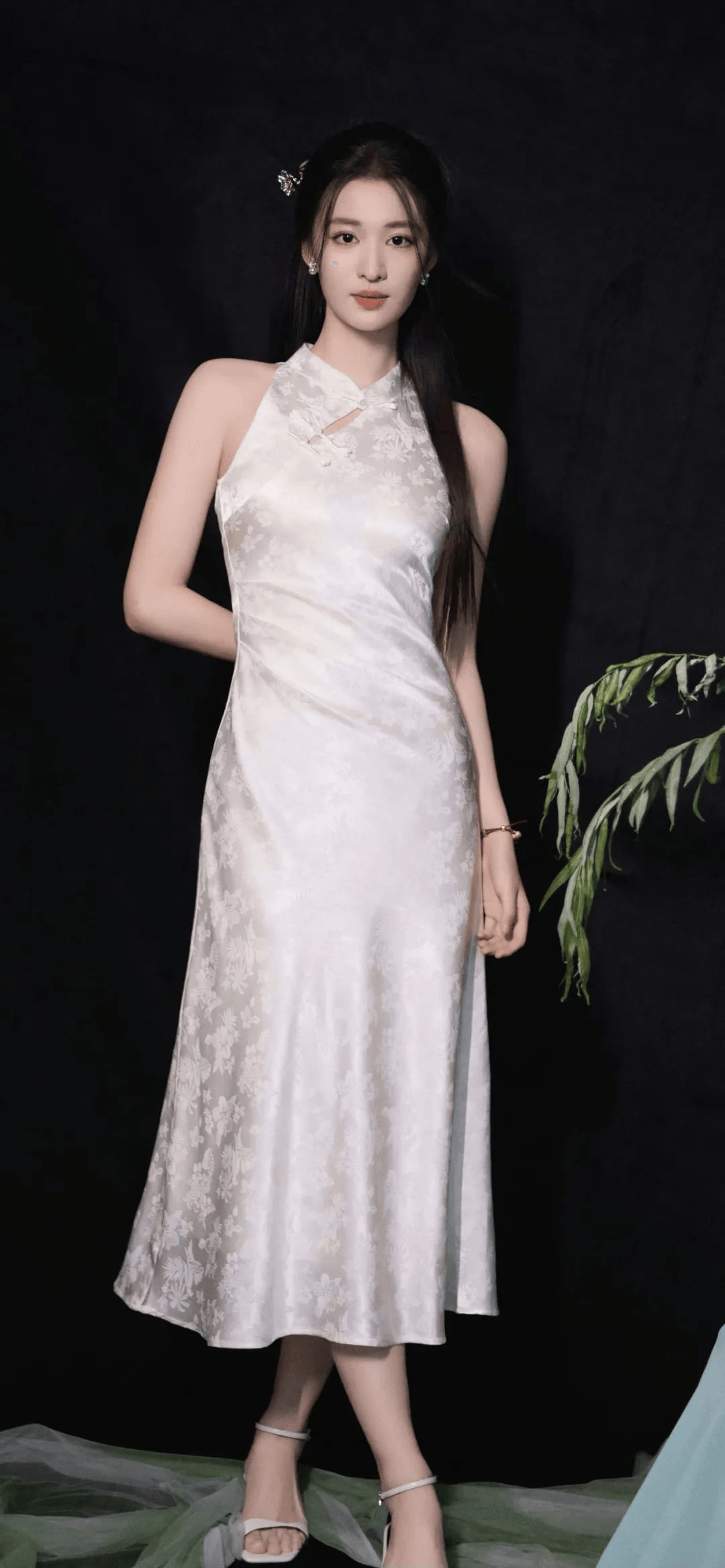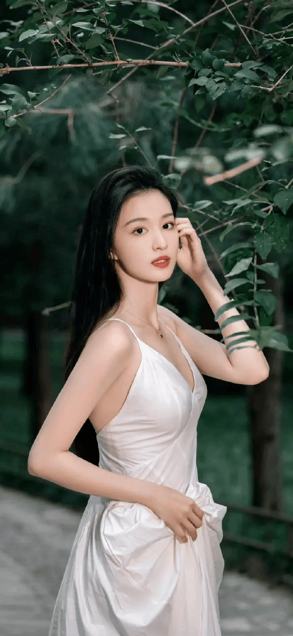 裙子的高开叉设计更是点睛之笔。当王楚然走动或者摆姿势的时候,那修长笔直的美腿若隐若现,简直让人移不开眼。这开叉的高度也把握得刚刚好,既展现了她的性感魅力,又不会让人觉得过于艳俗。她迈着轻盈的步伐,裙摆随风飘动,露出纤细的小腿和精致的脚踝,每一步都仿佛踩在人们的心尖上,让人心跳加速。