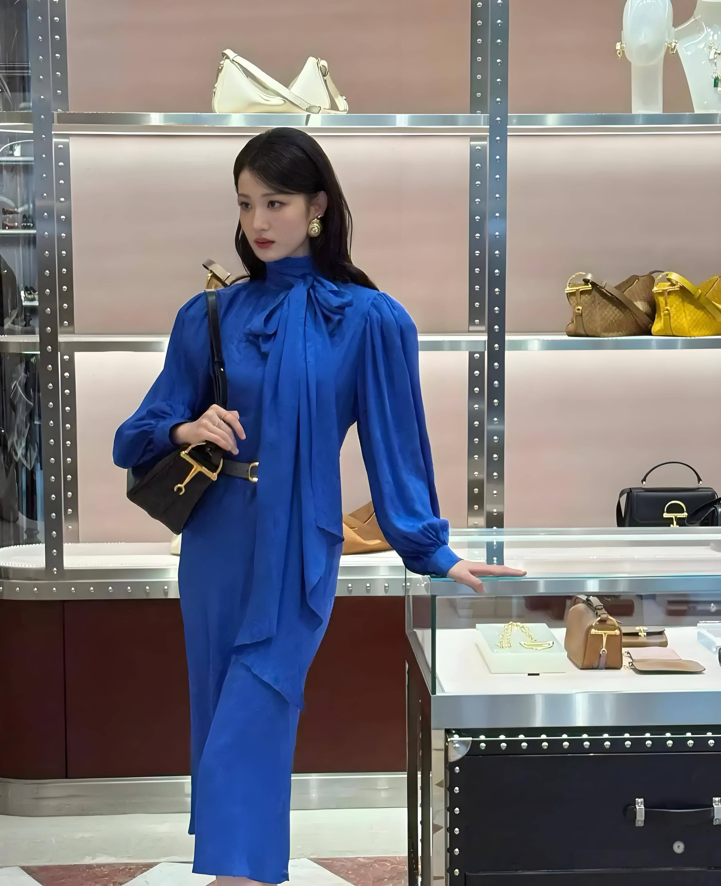 王楚然172cm的身高以及那立体的骨相,让她能够轻松地驾驭这款高难度的礼服。她穿上这条宝蓝色提花纱裙后,冷艳贵气中又透着摩登感,仿佛是从上世纪画报中走出来的美人,散发着一种独特的魅力。