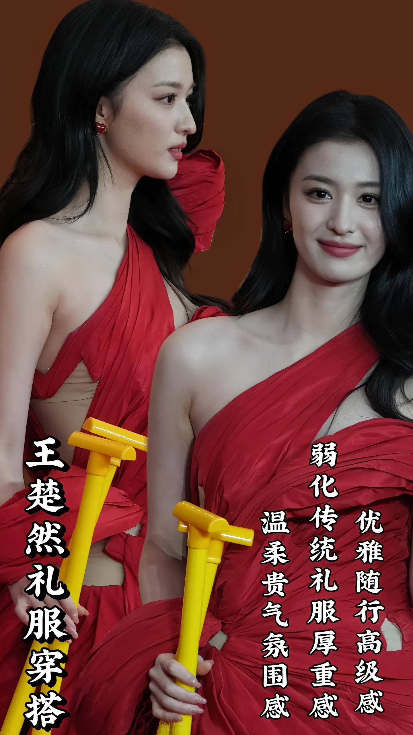 家人们,最近王楚然那组酒红色高开叉单肩礼服裙的造型图,简直在我心里疯狂刷屏,我反复看了无数遍,每看一次都要忍不住感叹:这颜值,这身材,还有这气质,真的是无与伦比,美到犯规啊!