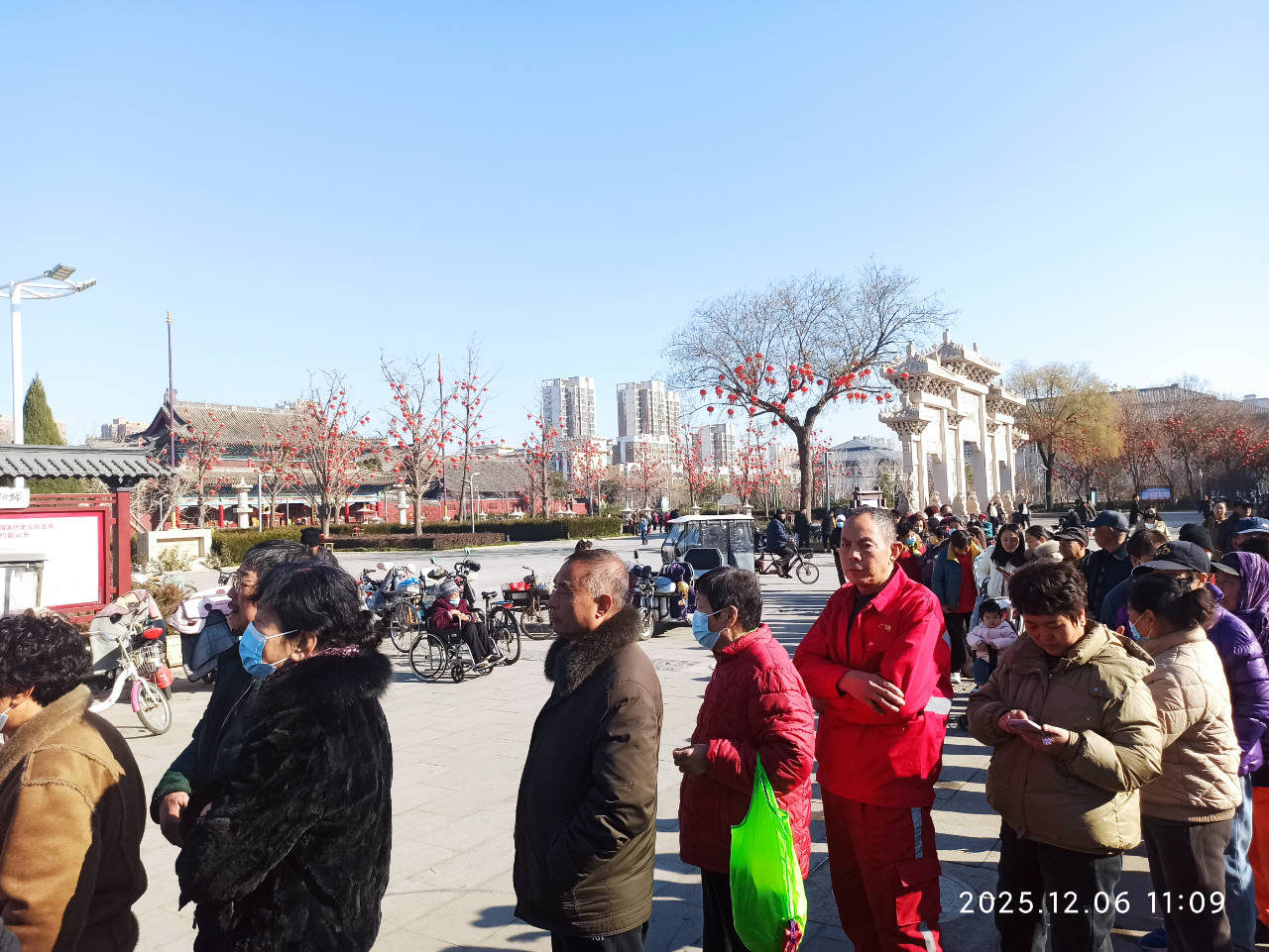 到了山门口,看到广场上有民间演奏,一会儿唱戏,一会儿唱歌的,好不热闹。后来,就看到一堆人,在排成了两个队伍。队伍的前面,是蒸馒头的大笼屉。我一开始以为是扫码领馒头之类的活动呢。走到面前,问了排队的阿姨这是做甚。阿姨说,排队打饭,今天是邢台的集会(十月十七),或许是大家都知道赶会的时候,这里会有斋饭,所以都早早的自觉的过来排队等着呢。我呢,就爱吃碰饭,既来之则安之(原本在纠结午饭吃什么,这倒好,冥冥之中安排好了),在开元寺门口吃一顿素饭,也是一个不错的体验!