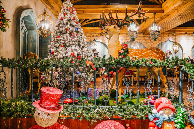 夜晚入住酒店,感受童话般的灯光与装饰。
