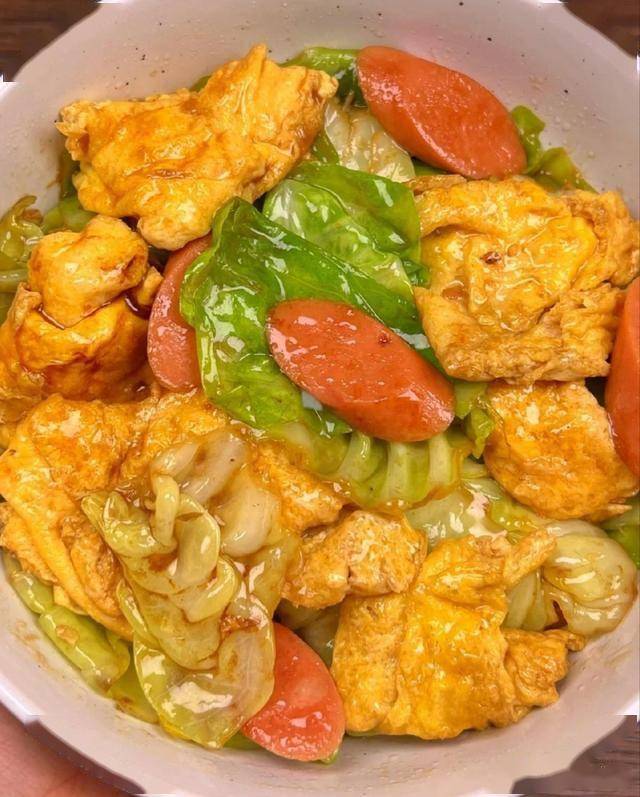 9. 包菜炒鸡蛋火腿——色彩缤纷,营养均衡!
