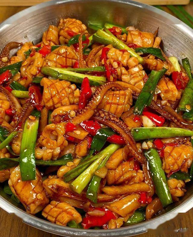 4. 回锅调味:倒入焯好水的鱿鱼卷,开最大火!迅速加入生抽、蚝油、白胡椒粉、一点点糖提鲜,快速翻炒均匀,让所有调料都裹在鱿鱼上。从鱿鱼下锅到出锅,整个过程不超过1分钟。一盘爽脆可口的爆炒鱿鱼就做好啦!