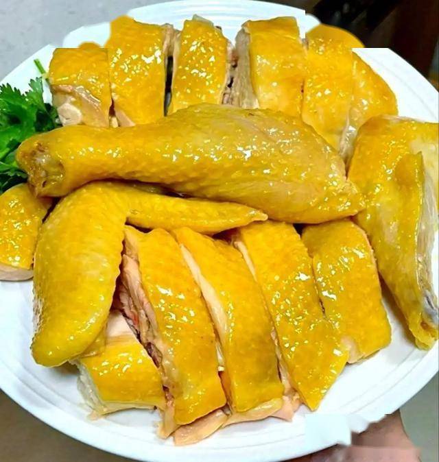 5. 待鸡身完全凉透后,在鸡身表面刷一层熟油增加光泽,然后斩成大小均匀的块状,摆盘时保持鸡形完整美观。