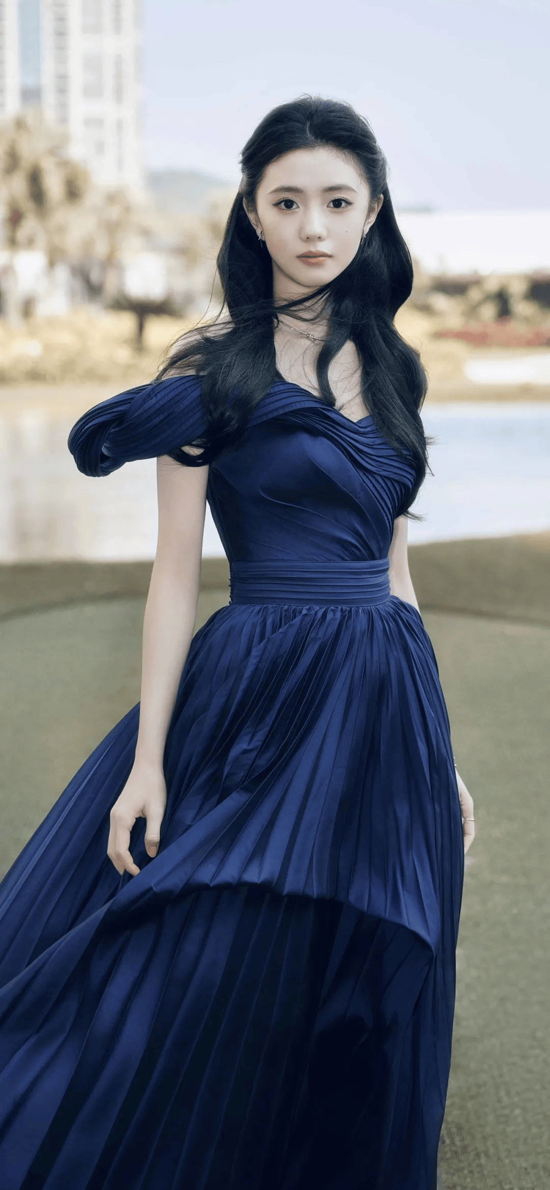刘浩存的美,带着一种未经雕琢的灵动与清透。当她身着一袭优雅蓝裙现身,仿佛将一片静谧的湖水披在身上,衬得肌肤白皙,眼神清澈。那份干净又带着些许故事感的气质,让她无需过多修饰,便已“颜值满分”,像一株在晨露中悄然舒展的百合,充满文艺片女主角的氛围。