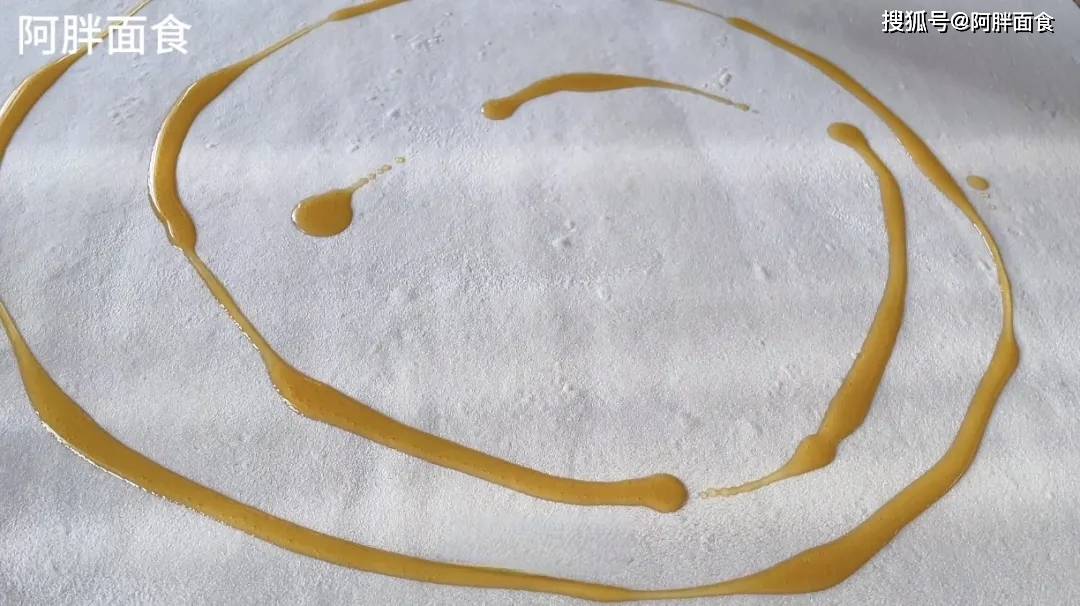 4、画圈圈一样倒入食用油。这里用芝麻香油会更好吃!