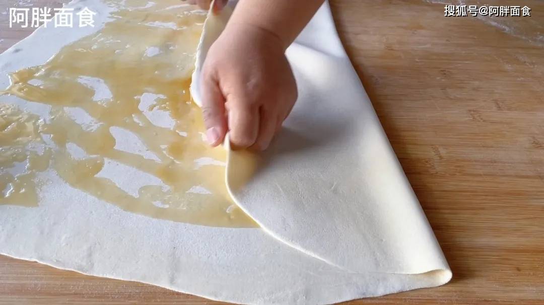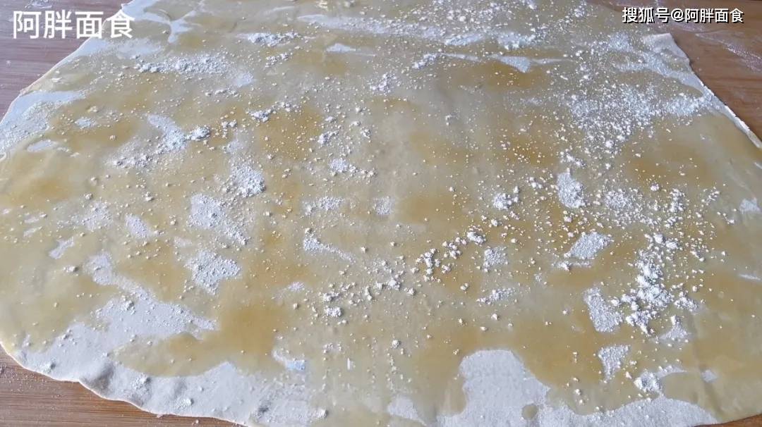 5、再像这样,拿起面片一端,往有油的地方去划拉,这样操作,不用刷子,也能把油抹均匀,省的洗油刷。
