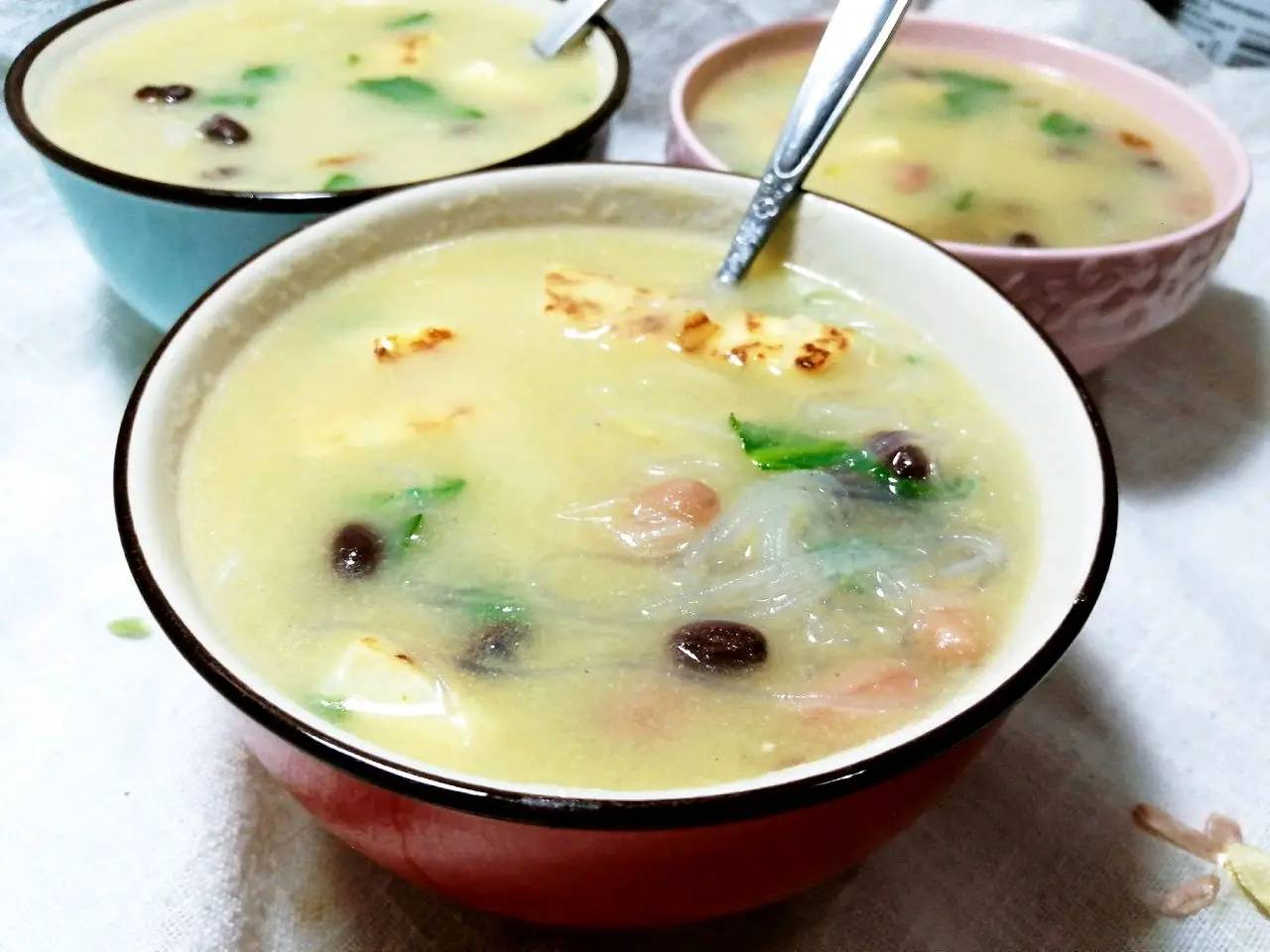 甜沫是潍坊最接地气的小吃,名字带 “甜”,实则是咸香口味,藏着老潍县的饮食智慧。它用小米面、玉米面熬制而成,加入花生、粉条、菠菜、黄豆、海带丝,慢慢熬至浓稠,再放入盐、葱花、香油调味,做法简单,却滋味十足。