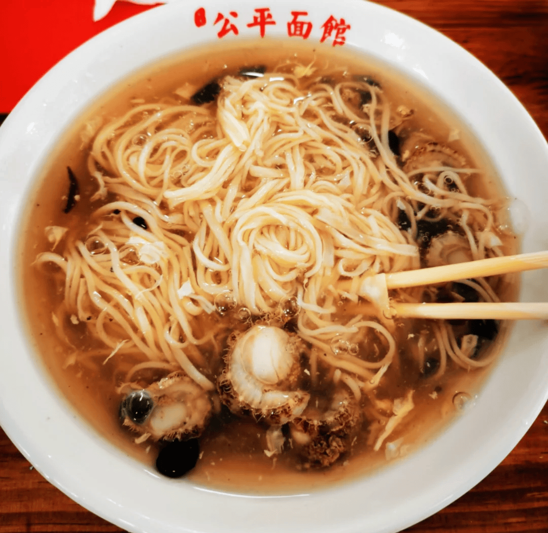 灵魂是那碗 “七分卤”,用加吉鱼、扇贝等新鲜海鱼慢熬汤底,再加入鸡肉、猪肉吊鲜,勾芡后淋入蛋液,熬得黏滑鲜醇,鲜味儿直透鼻腔。端上桌时,面卧碗底,浇上滚烫卤汁,撒一把葱花、香菜,热气氤氲中,海味与面香交织。本地人吃它从不多加调料,配一个刚出炉的杠子头,吸满卤汁,越嚼越香,一口解锁清晨的鲜爽。