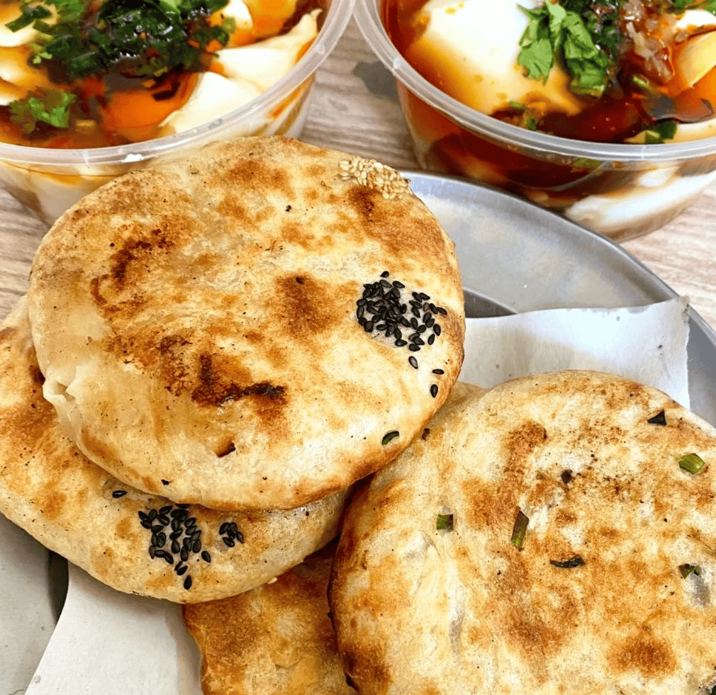 炭火的温润烘烤下,火烧外皮慢慢鼓起,烤至金黄焦脆,内里的肥肉油脂浸润馅料,香而不腻。刚出炉的火烧圆滚滚、油亮亮,咬一口外皮咯咯作响,内里软嫩多汁,花椒的麻香中和了肉的醇厚,越嚼越香。本地人吃它,必配一碗咸粘粥或豆腐脑,油香融入粥里,一口火烧一口粥,便是最踏实的早餐仪式感。