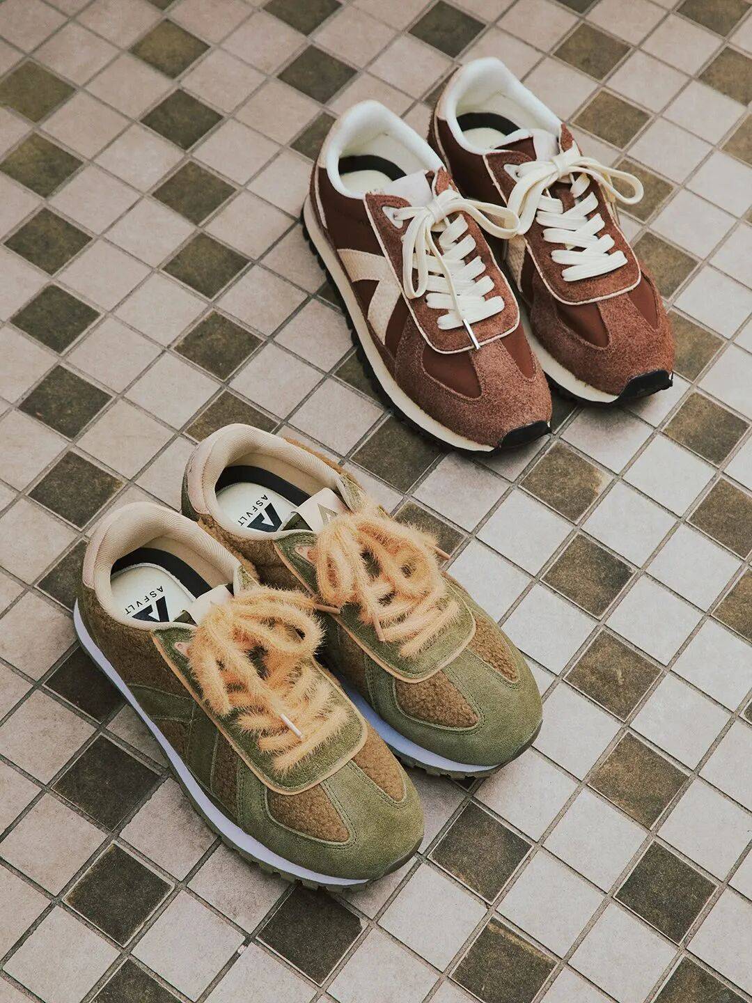 除了身上穿的,小的绿色麂皮配饰也值得拥有。比如,一双麂皮鞋,轻松入秋~ 今年麂皮运动鞋依旧很火,除了经典的棕色,还可以看看绿色的。 这双来自日本品牌Asfult,经常在日杂中出现。他家的颜色选择非常多,还很喜欢拼接不同的材质,像这双就用了毛绒材质和麂皮绒材质,蛮特别的。官网参考价约775元。▼