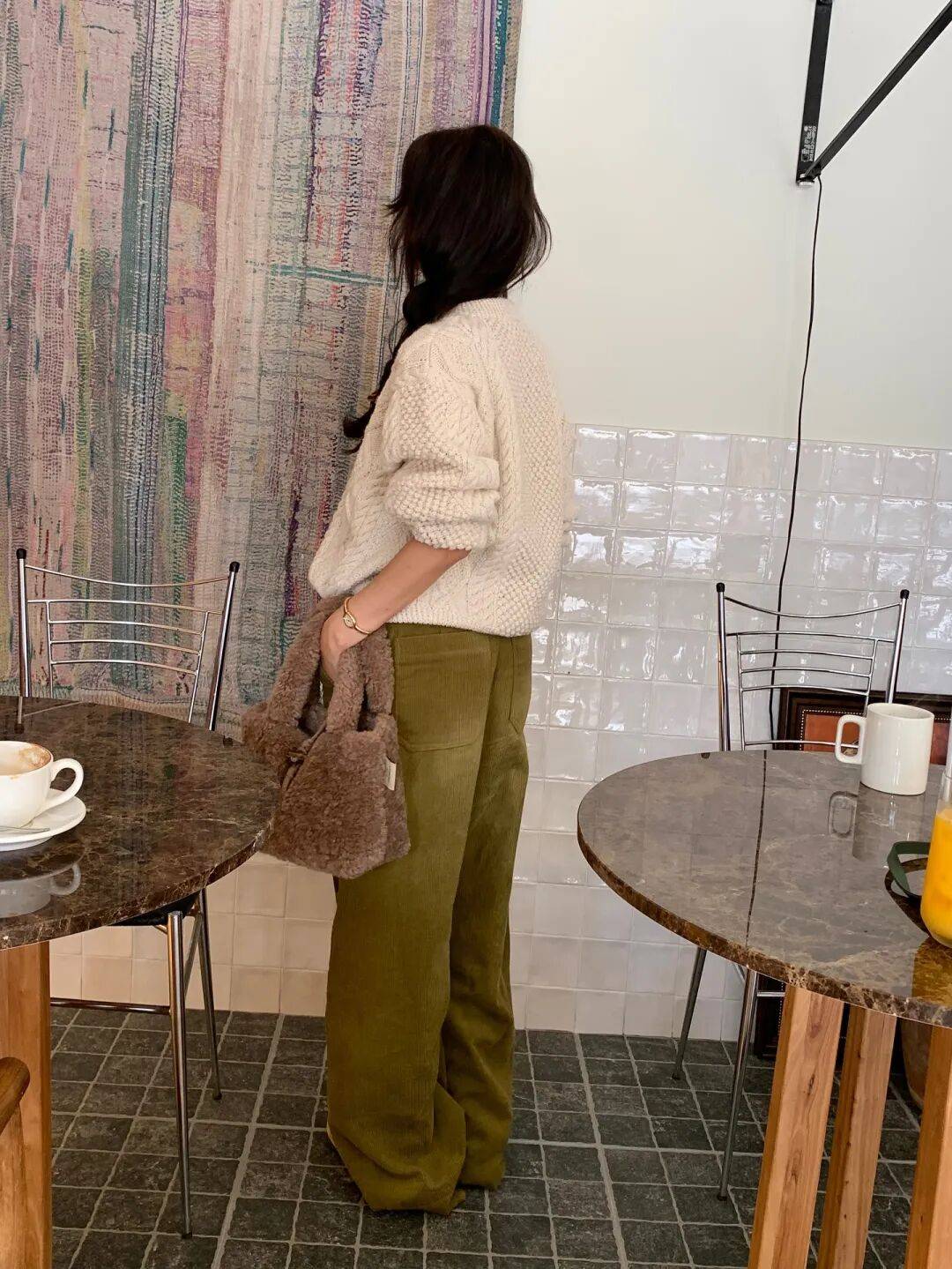 不过,要说低门槛不出错的灯芯绒单品入门,我还是首推灯芯绒裤子。 上半身的搭配可以随意发挥,可以搭同样复古的费尔岛毛衣。吴昕▼