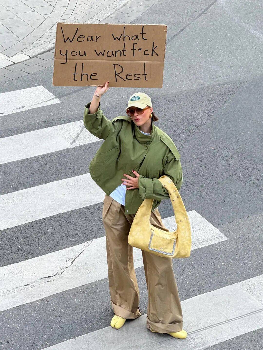 绿色麂皮包包现在看到得还不算多,可以作为包柜里的特别款。 德国博主Linda有只可爱的绿色麂皮小包,每次背都会在搭配中增加颜色的呼应。▼