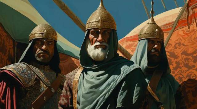 端坐于营帐前的昔班尼汗