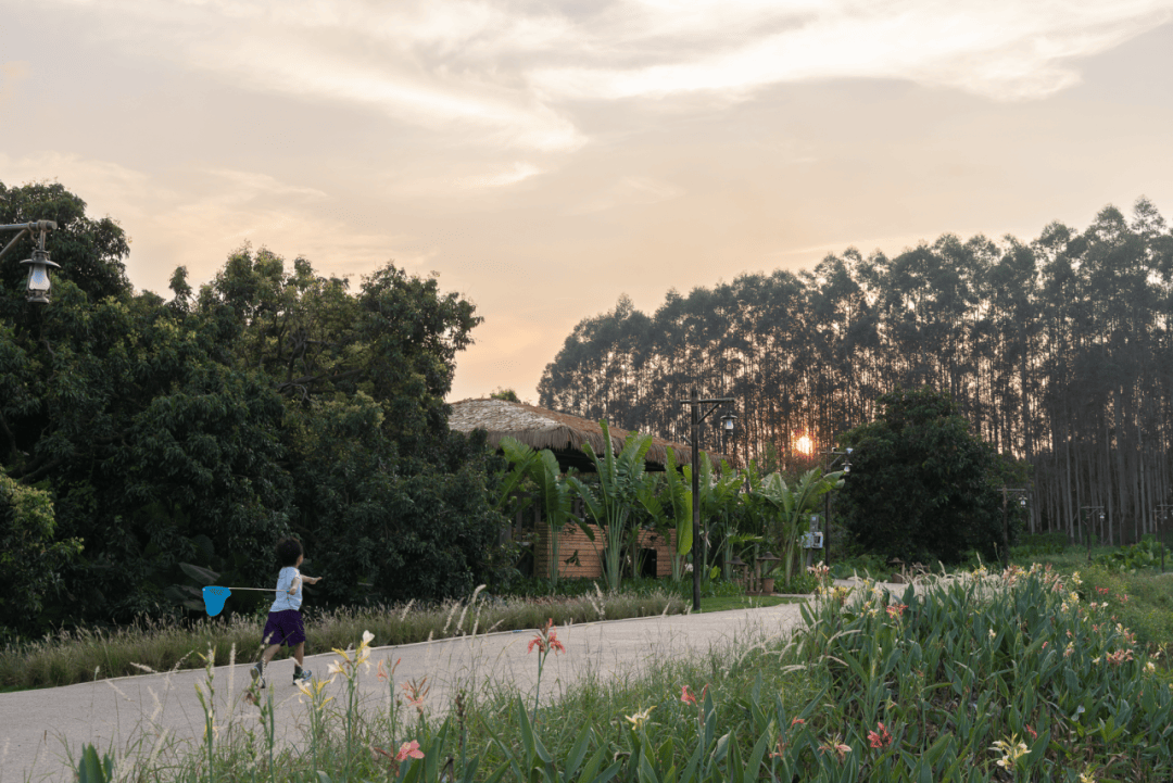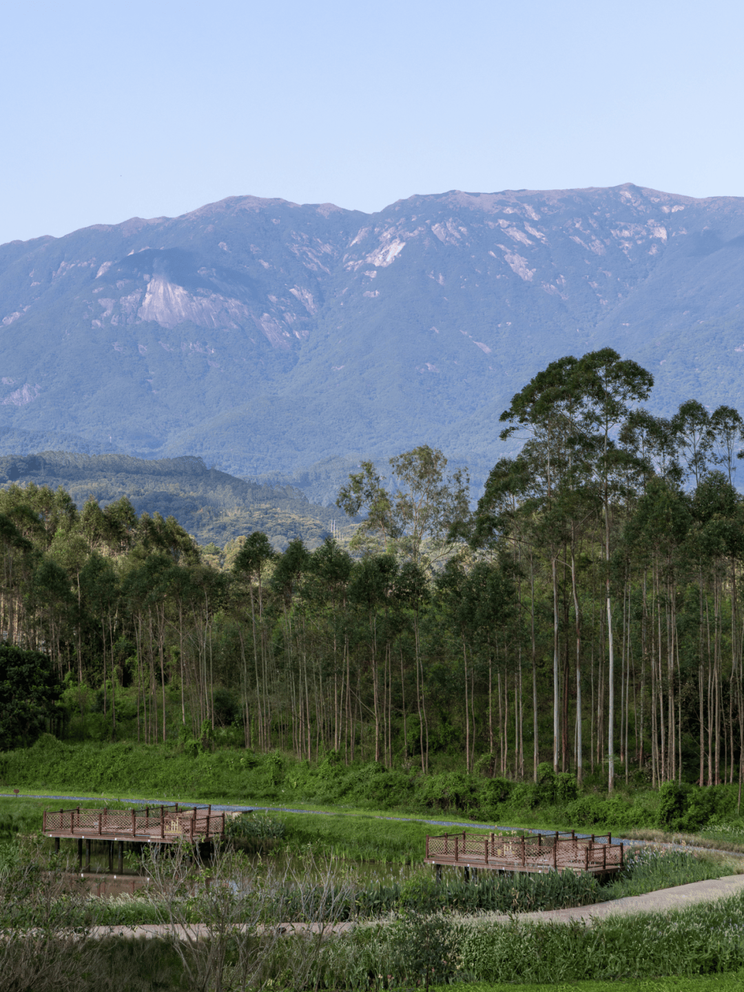项目信息 项目名称|罗浮山泰康山夏农场 委托业主|广东罗浮胜景生态园林有限公司 景观设计|上海魏玛设计 建筑设计|魏玛设计常州公司 景观施工|南京韵涵园林景观工程有限公司 标识设计|上海魏玛设计 项目地址|广东省惠州市博罗县山下村山夏农场 建成时间|2025年10月 景观面积|991亩 摄影团队|IAM岸木摄影 |