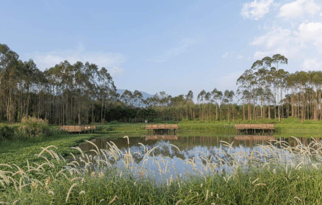湖区垂钓平台:生态化介入与亲水体验 针对现状湖区,我们采用了最小干预的生态化设计手法。木质垂钓平台以架空的方式轻盈地延伸至水面,减少对水体生态的扰动。平台边缘特意留出了水生植物种植区,芦苇、菖蒲等不仅柔化了边界,也促进了水体的净化。这里为寻求宁静的访客提供了一处静坐、观鱼、垂钓的专属空间,在山水间享受独处的静谧时光。在此垂钓,不再是孤寂的等待,而是与湖水、山风、树影的对话。静坐一隅,时间仿佛也慢了下来,适合放空,也适合与自己相处。 湖区生态化