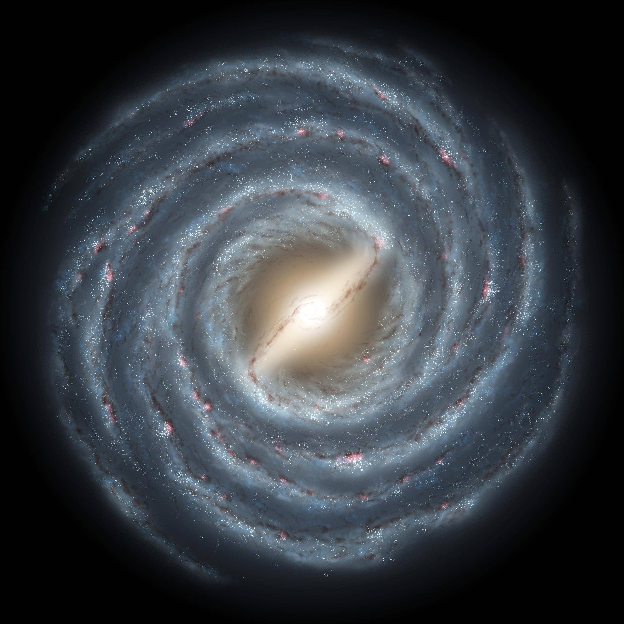 让我们把视线拉高,看看我们在银河系的位置。 银河系是一个直径约 10 万到 18 万光年 的棒旋星系,拥有 1000 亿到 4000 亿 颗恒星,请记住这个数字:4000 亿,而我们肉眼能看到的:7000,我们肉眼看到的星星,不到银河系恒星总数的亿分之二。