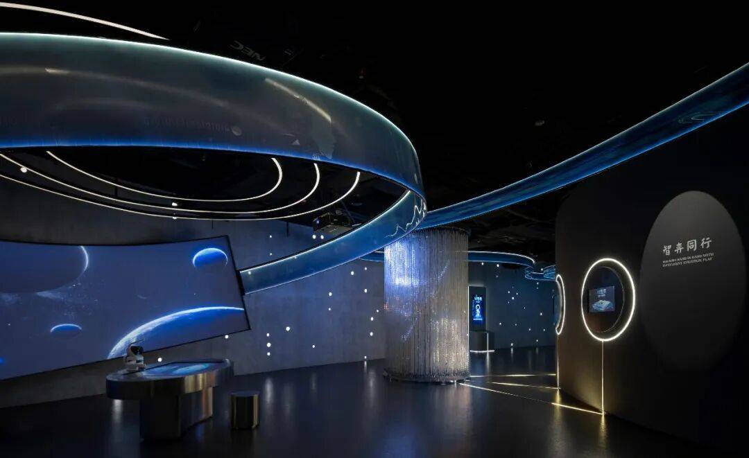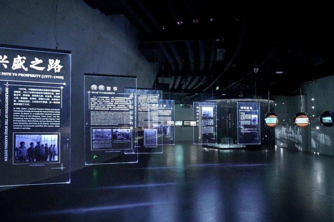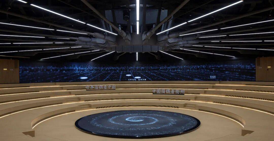 ↑ 天元围棋道场 摄影:刘国威 参观流线被设计为一场“无尽”的悟道之旅。路径以循环往复的形式组织,观众在行进中不断回到似曾相识却又不同的节点,形成空间与心理上的回环。三个反复出现的情绪空间既是展陈章节的分割标志,也强化了“无尽”的时空体验。这一流线不仅呼应围棋中“气”与“循环”的哲学,也暗喻烂柯传说中“山中方一日,世上已千年”的时空错位感,使观展本身成为一场修行。