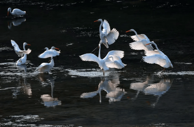 1 山水西峡:地理奇观的造化之笔 秦岭余脉的尽头 伏牛山收束起最苍翠的衣袂 在这里隆起“八山一水一分田”的骨架 鹳河如碧色缎带,穿城而过 一半水汽化作南方的云 一半清流踏上北上的征途—— 作为南水北调中线工程的核心水源区 西峡水源区面积达3157平方公里 占全县总面积的91.4% 河南省水源区总面积的40.21% 这里是中线工程水源区面积第一大县 每一道山脊、每一片森林、每一条河流 都牵动着一渠清水北上的纯净与安全 冬日的静谧中 一群灵动的白鹭在鹳河湿地翩然栖息 捕鱼高手鸬鹚凝神伫立 低调绅士绿头鸭从容游弋 西峡的生态治理成效 让鹳河成为候鸟迁徙途中的“五星驿站”