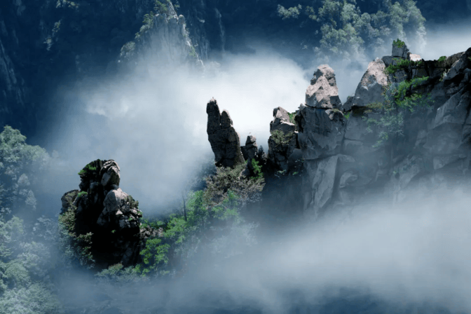 登上老界岭 领略“中原第一峰”的雄伟奇绝 这里是南北气候的天然分界线 磅礴云涛在脚下碰撞、交融 长江、黄河两大流域也在此分野,浩浩东流 走进龙潭沟 亿万年前冷凝而成的花岗岩体 在长期的水流雕琢下 化作典型的水蚀地貌奇观 梯式瀑布次第垂落 水珠在阳光下碎成跃动的音符 奏响深山最清澈的乐章