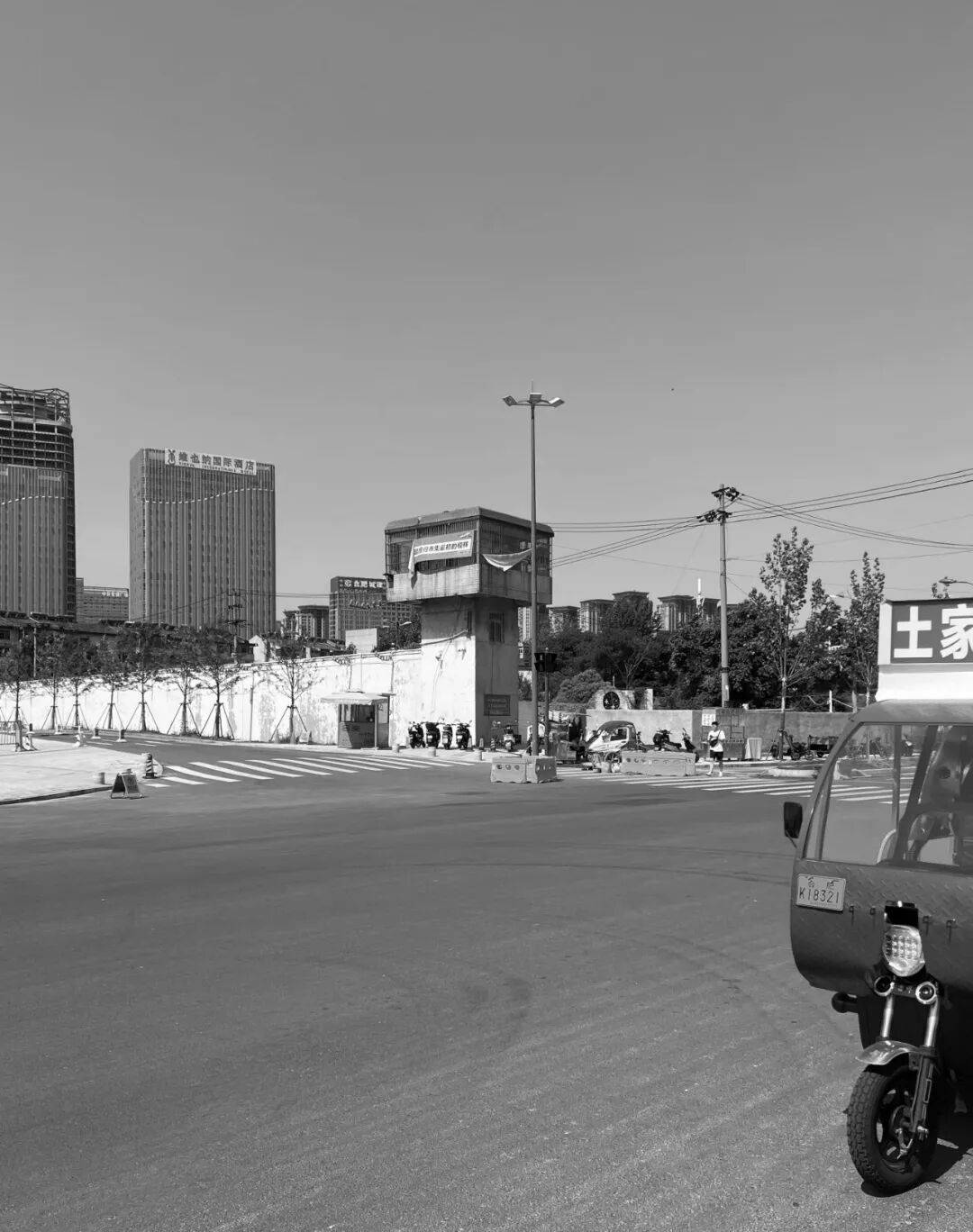 西南角外立面©MATA OKAWA 无意间的发现 项目在合柴1972创意园区。园区前身是安徽省合肥监狱,重新改造后如已成为了当地热门的文创园区。第一次来看场地时是陪同甲方看另外一个餐厅项目。现场无意瞥间路边的一栋废弃建筑,便好奇问了物业该建筑的状况和用途,得知是原监狱的看守塔,由于各种原因没有与园区一起改造荒废在了一边。随即便询问是否可以改造成为园区及附近居民服务的一家24h小书店。项目就这样启动了。
