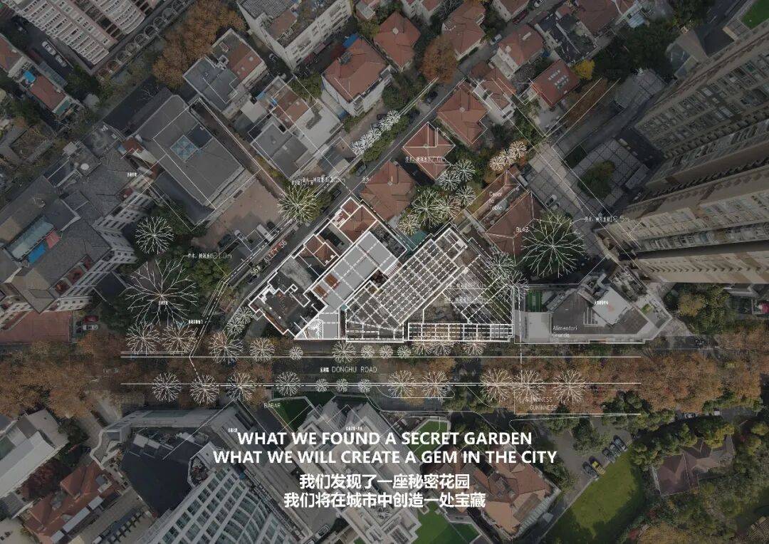 © 党航 在过去半个多世纪里,东湖路 30 号从最初的华侨办事处和街边花园,逐渐被不同年代的建筑包围填满,是城市增量时代的典型。2024 年末,面对这座现实“迷宫花园”,设计团队与业主共同确立了“减量”策略 —— 通过清理与拆除,释放原有庭院,为高密度街区创造呼吸空间。