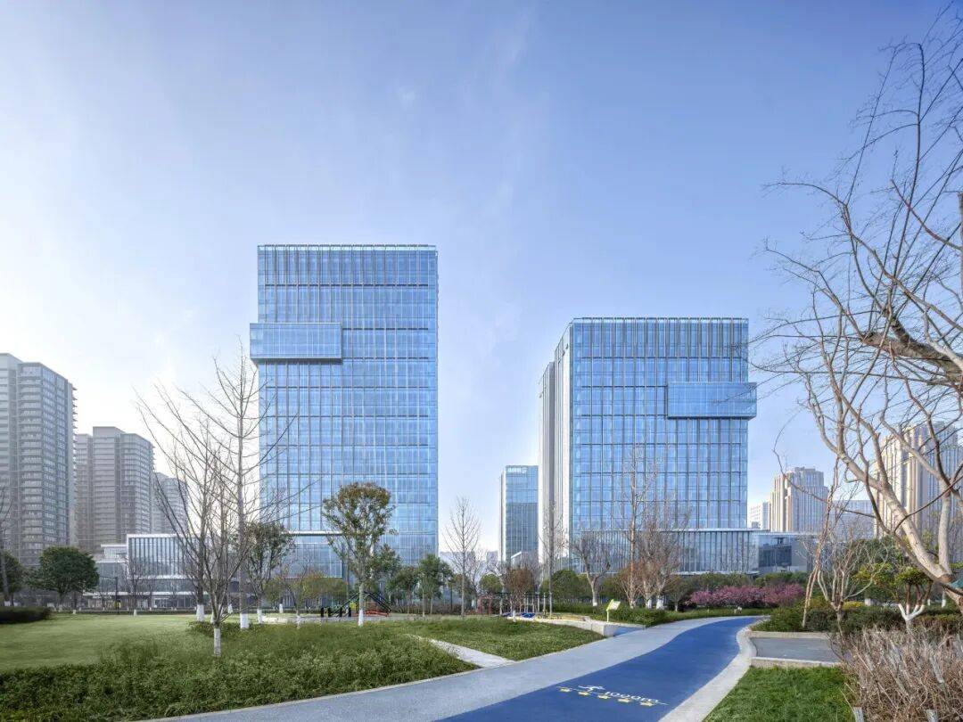 立面细节©筑言建象-建筑摄影 04. 社会价值 从社区到城市,这一精致而统一的立面语言,不仅围合出丰富活跃的内部社区,更使建筑群作为一个整体释放出强大的都市辐射力,成为衔接金沙湖景与现代商务生活的城市门户,在简约中彰显着面向未来的建筑自信。项目的建设,将为金沙湖都市综合服务中心注入新的活力,助力构建杭州东部宜居宜业的现代化新城样板。