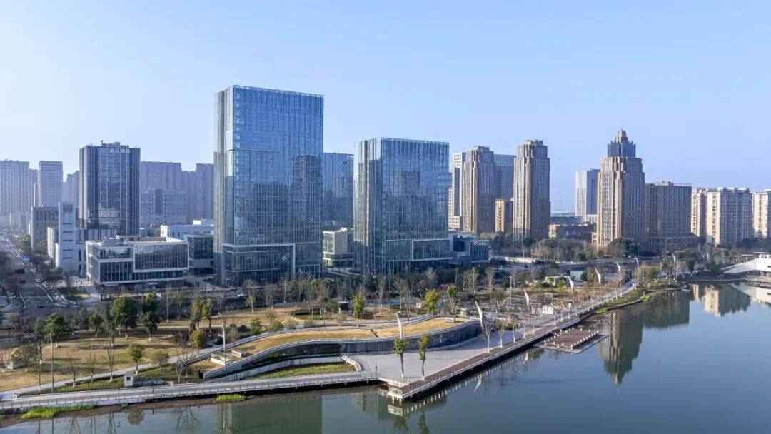 历经十余年发展,金沙湖从昔日的围垦滩涂蝶变为集行政办公、商业金融、产业总部于一体的"城市客厅"。环湖近百万平方米商业体量汇聚龙湖天街、吾角天街、印象城、银泰百货等四大综合体,金沙湖大剧院、文体中心、图书馆等文化地标相继投用,"杭州小三亚"的碧波金沙与棕榈树影已成为城市新名片。而今,随着东部湾新城纳入钱江新城二期拓展研究区,这座"都市未来城"正迎来从"产业新区"向"现代化城区"的跃升。在此背景下,位于金沙湖南岸的金沙中心应运而生。这不仅是办公园区,而是一个与湖共生的立体城市综合体,坐拥一线湖景资源,打造"产城人文景"深度融合新名片。